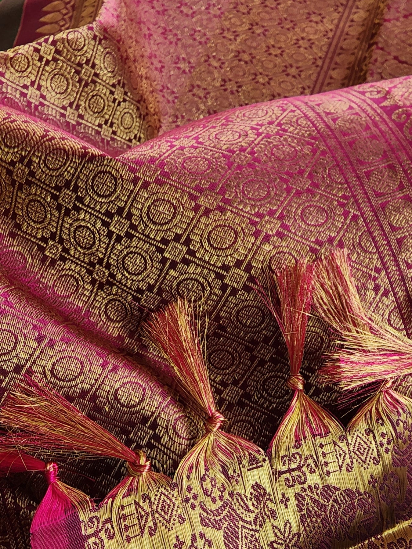 The elegant Gold zari borders elevates the style quotient