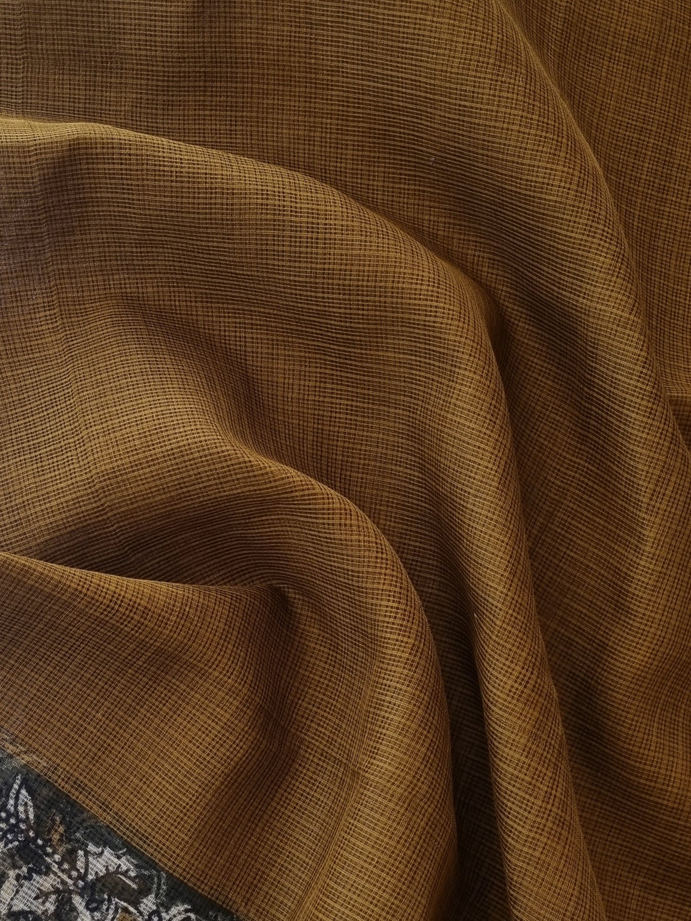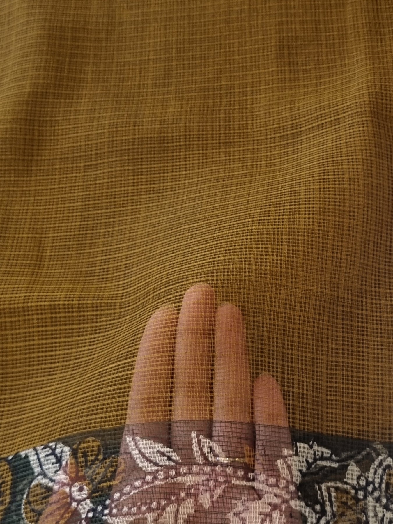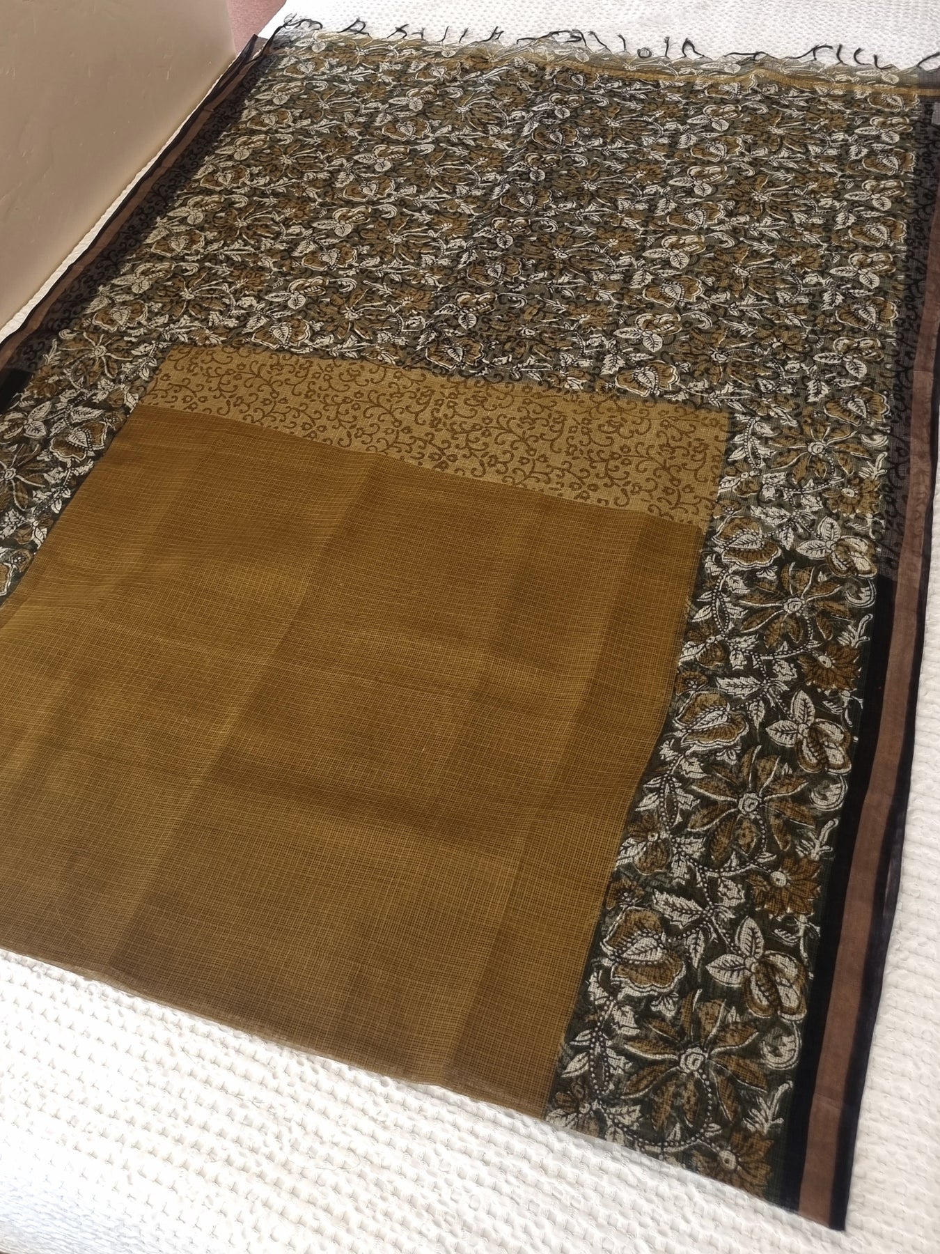 Beautiful saree with Gold borders and Block Prints on the Body & Pallu