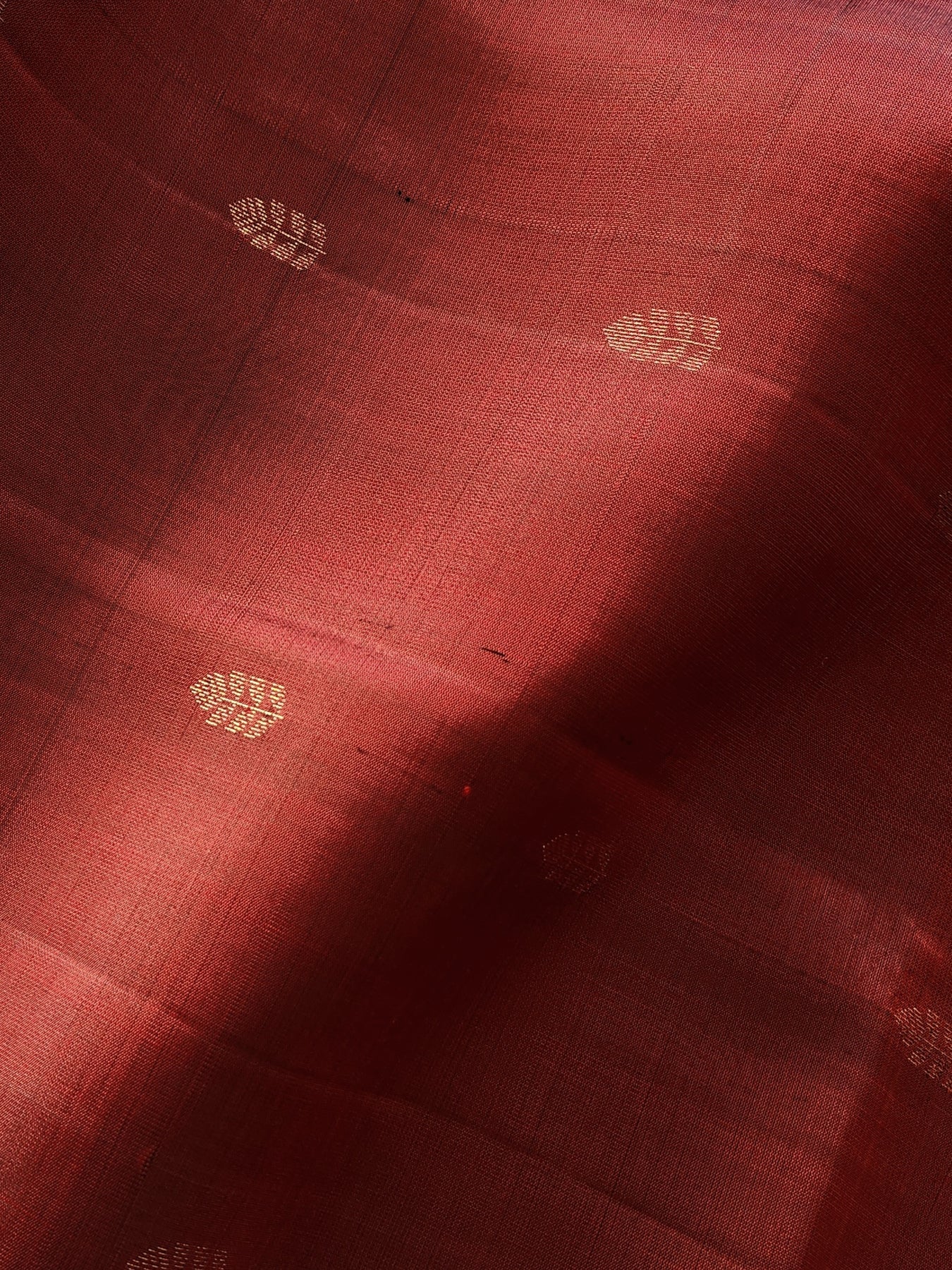 Beautiful Dual Toned Handwoven Soft Silk Saree with contrast Gold zari Borders and intricately woven gold motifs on the body and a rich contrast woven pallu