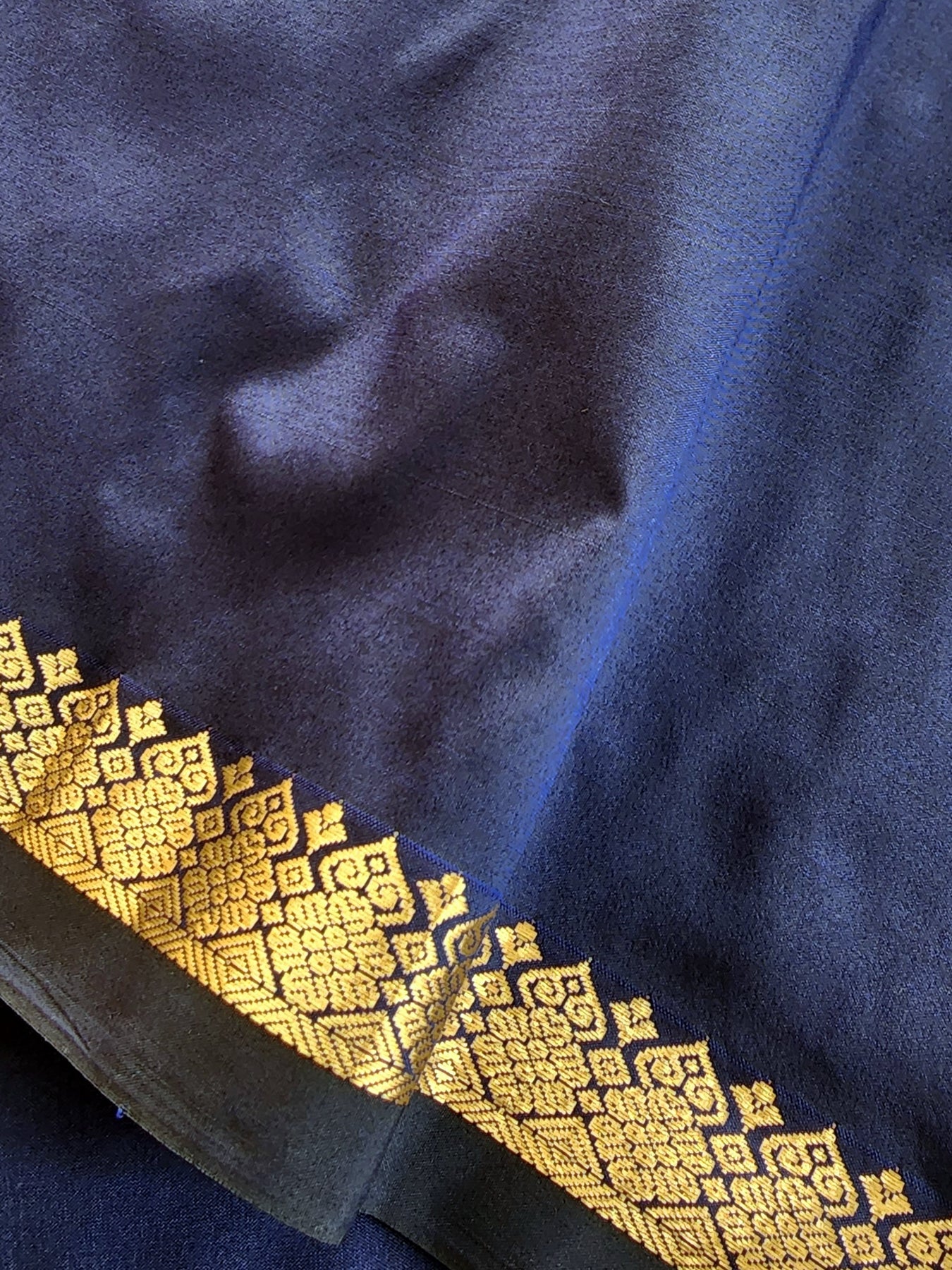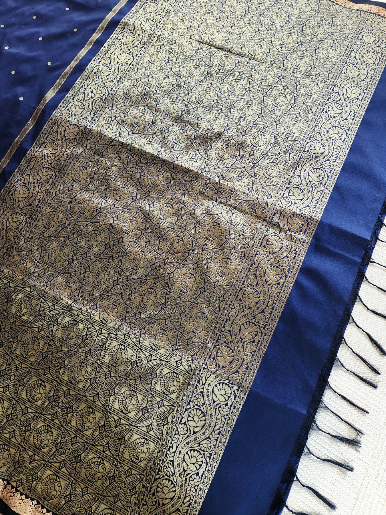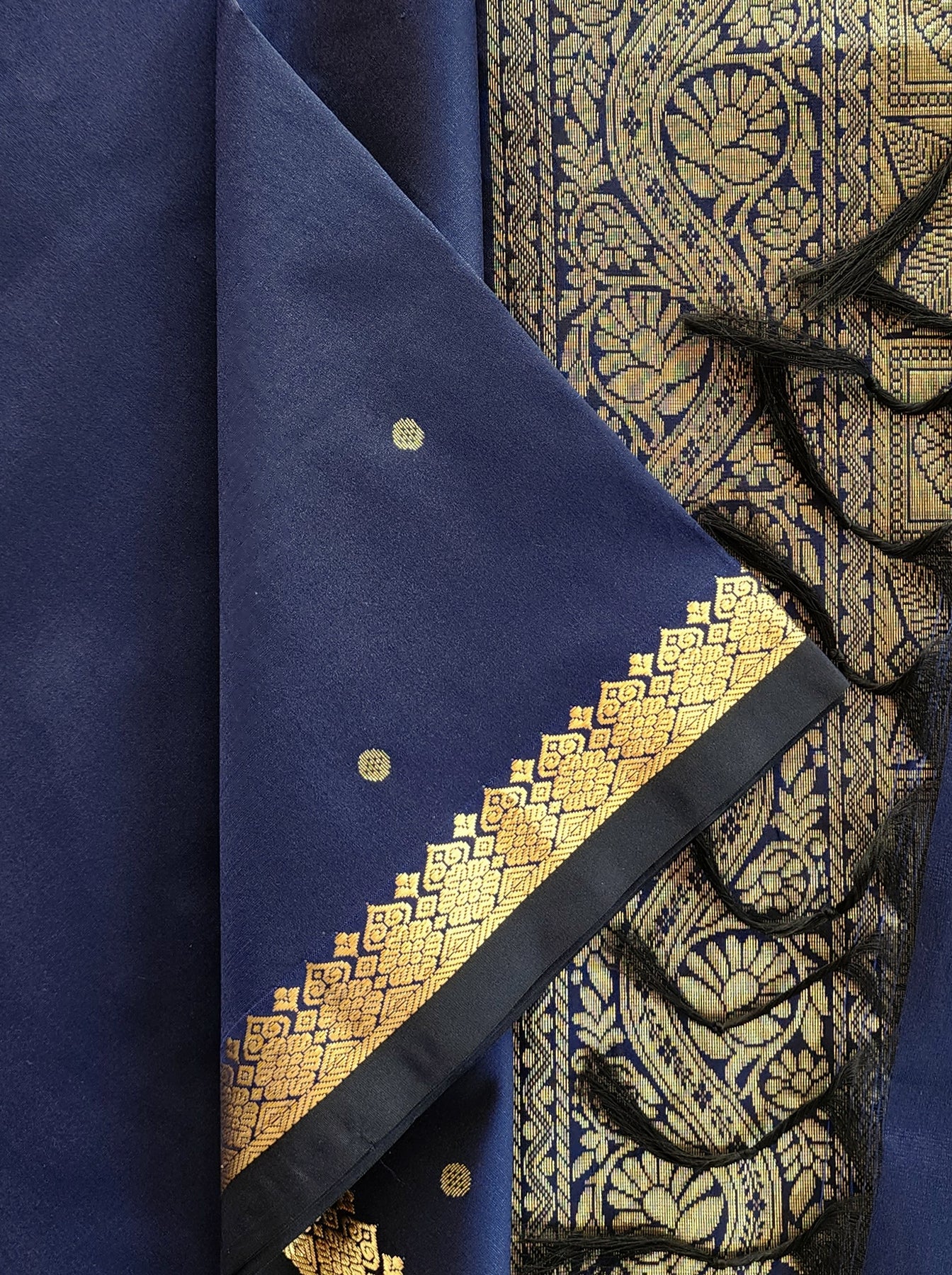An elegant Navy Blue Semi Silk Saree with Gold Borders