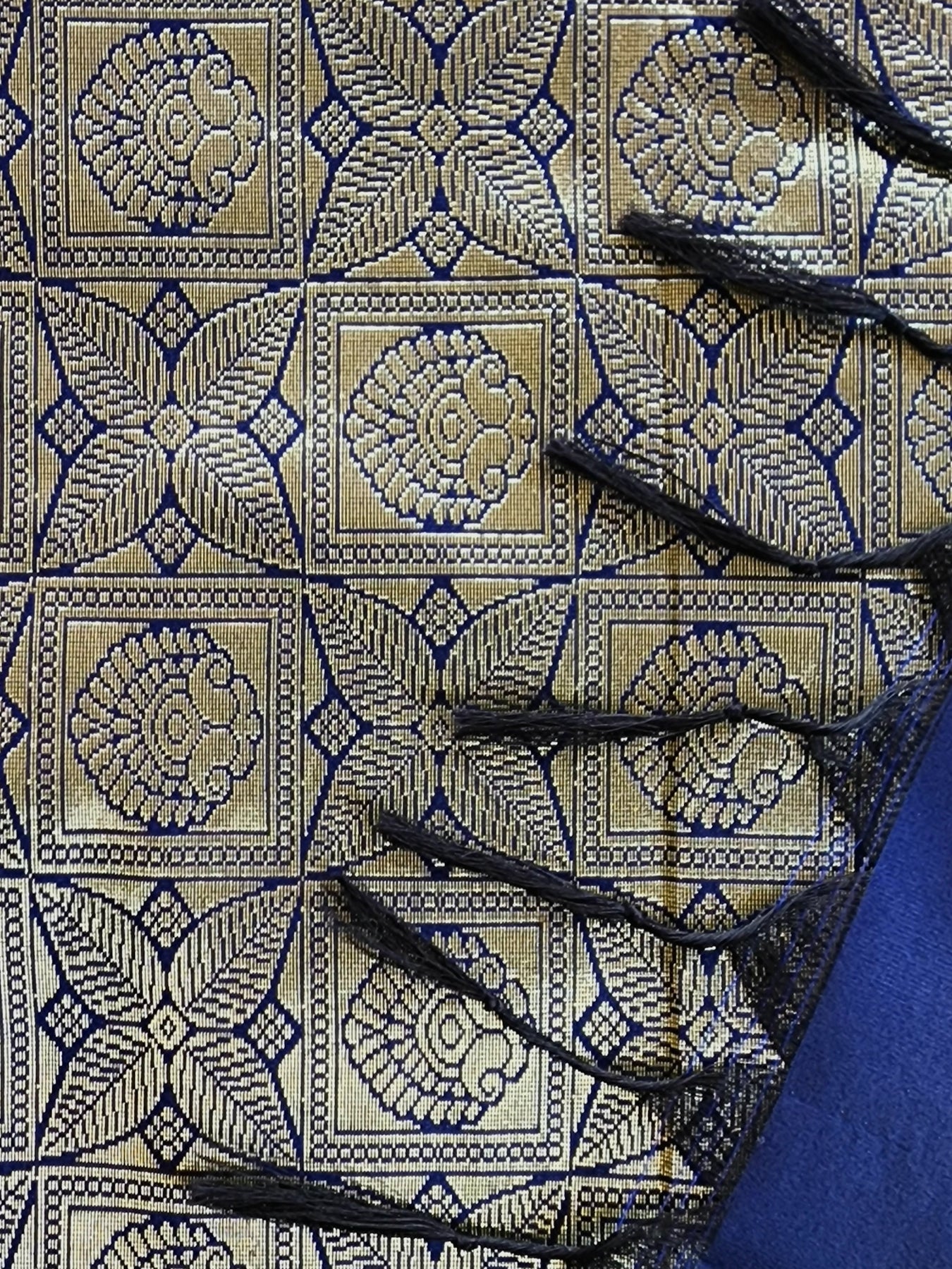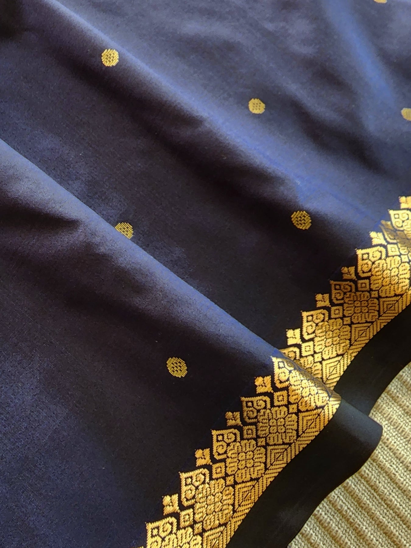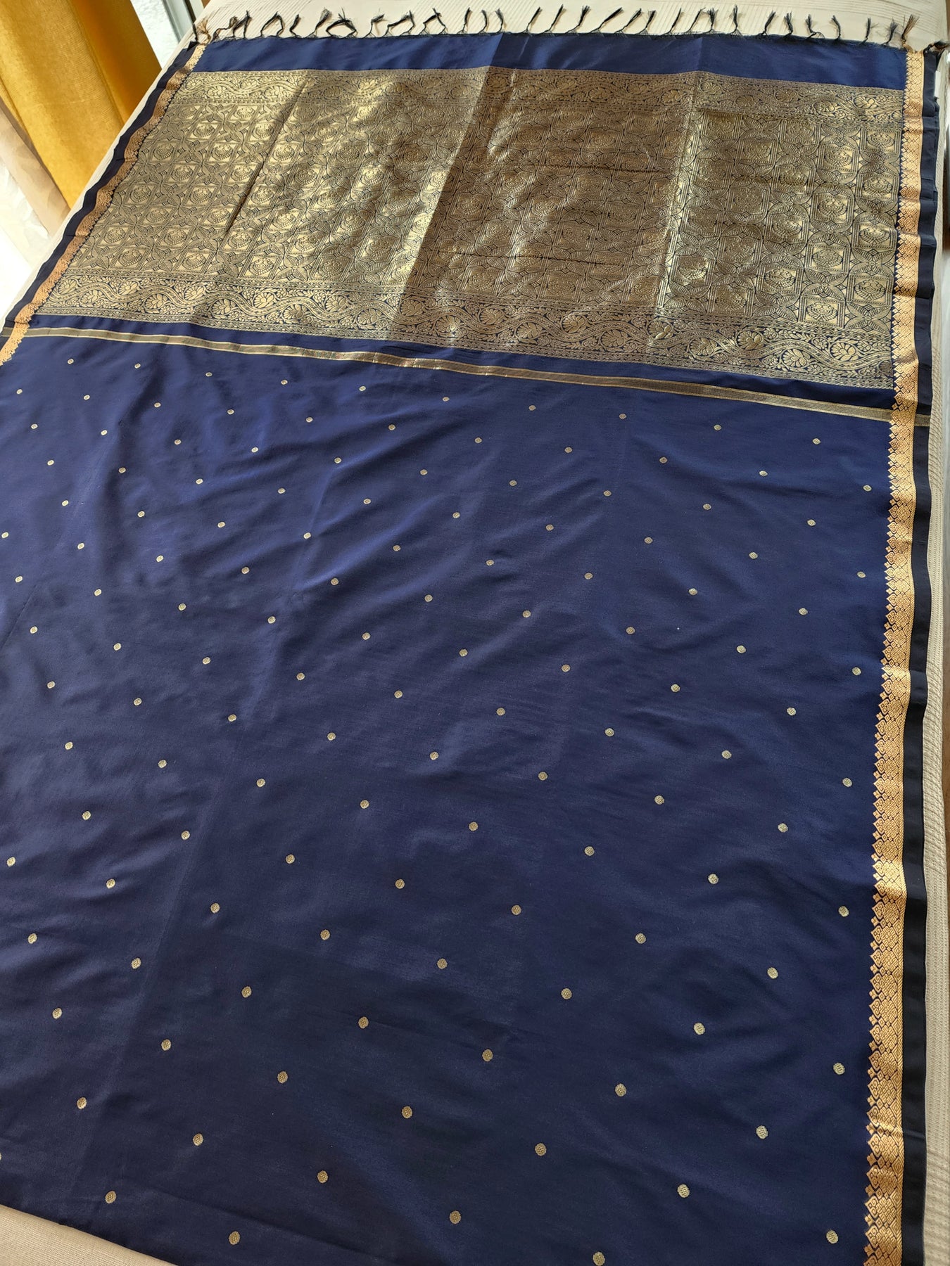 An elegant Navy Blue Semi Silk Saree with Gold Borders