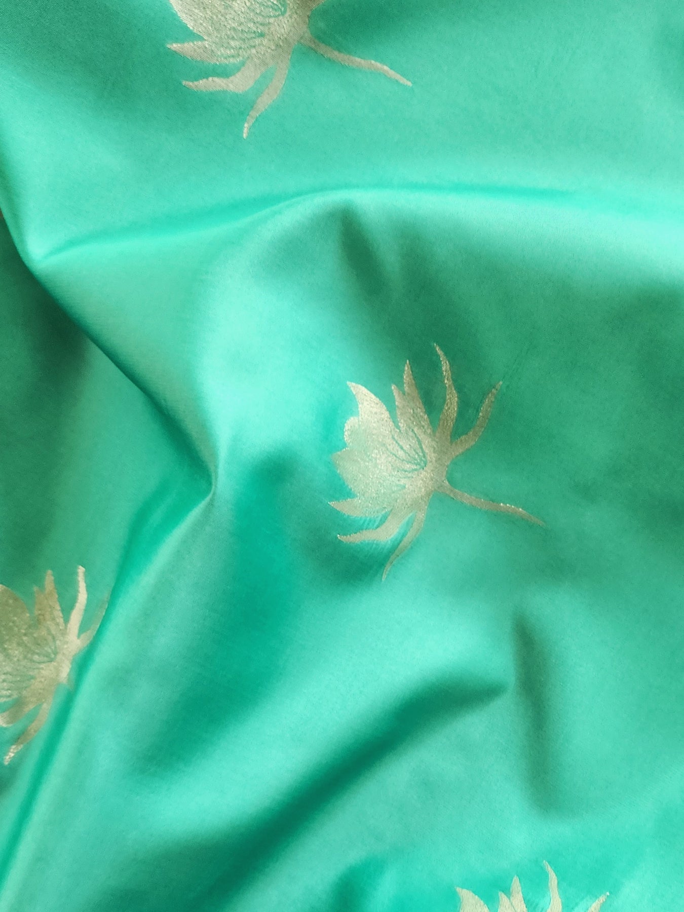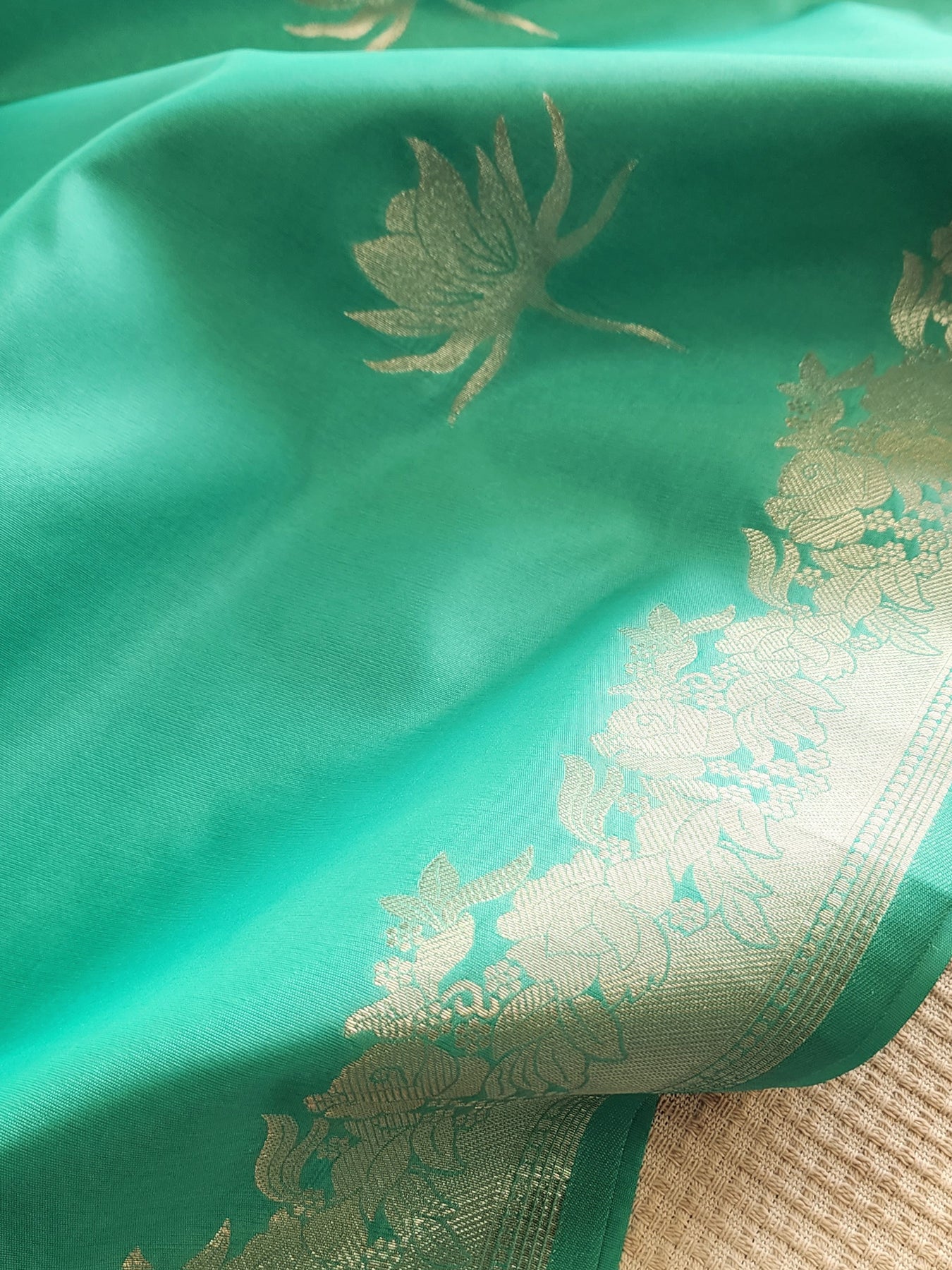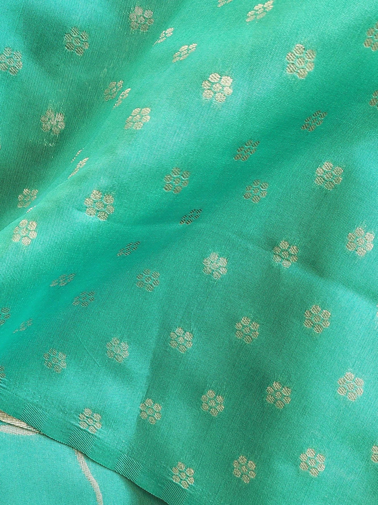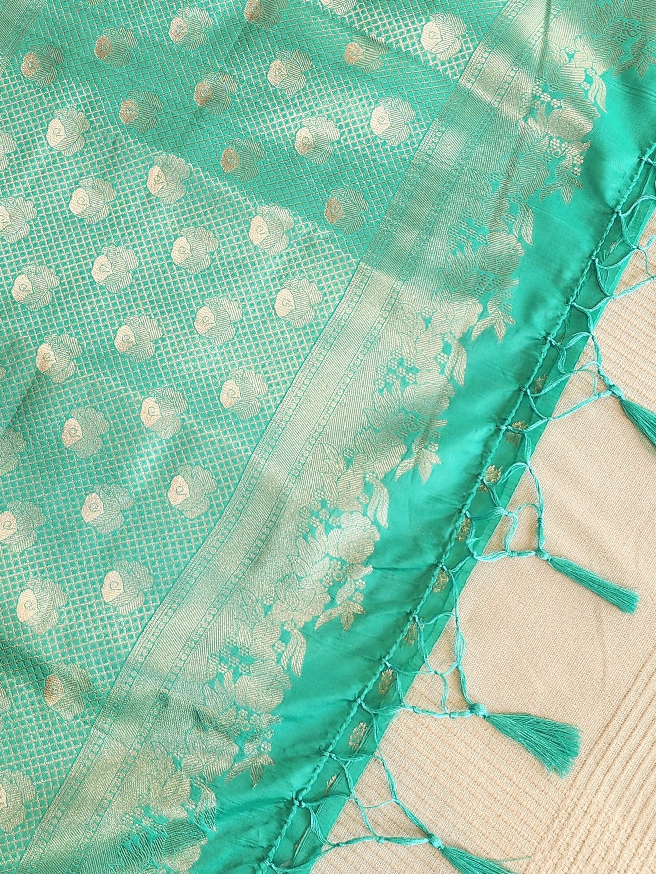 Turquoise Semi Silk Saree with woven borders and pallu, beautifully finished with tassels