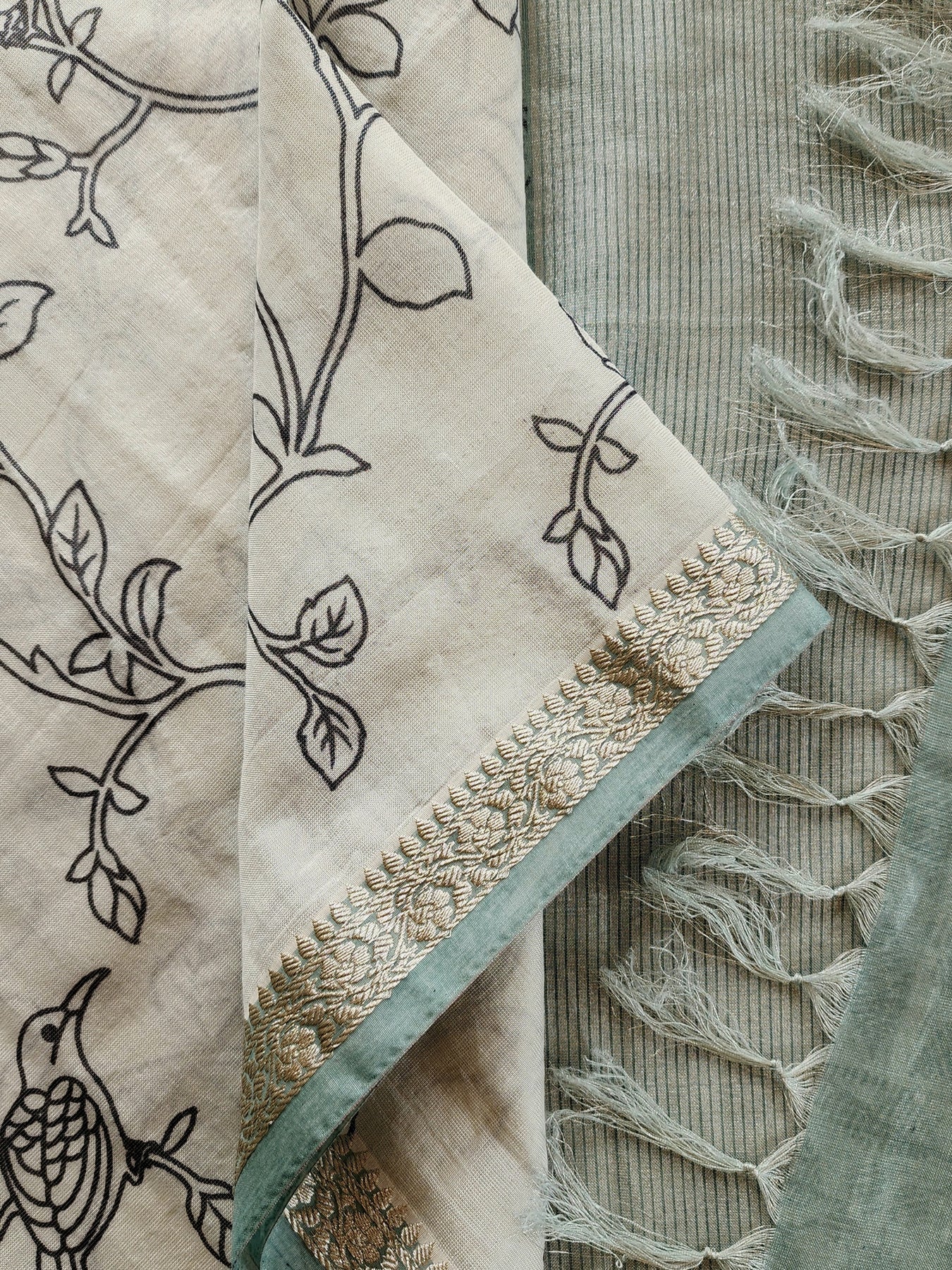 • Blouse Fabric: The last image gives a detailed look of the blouse piece that comes with the saree
