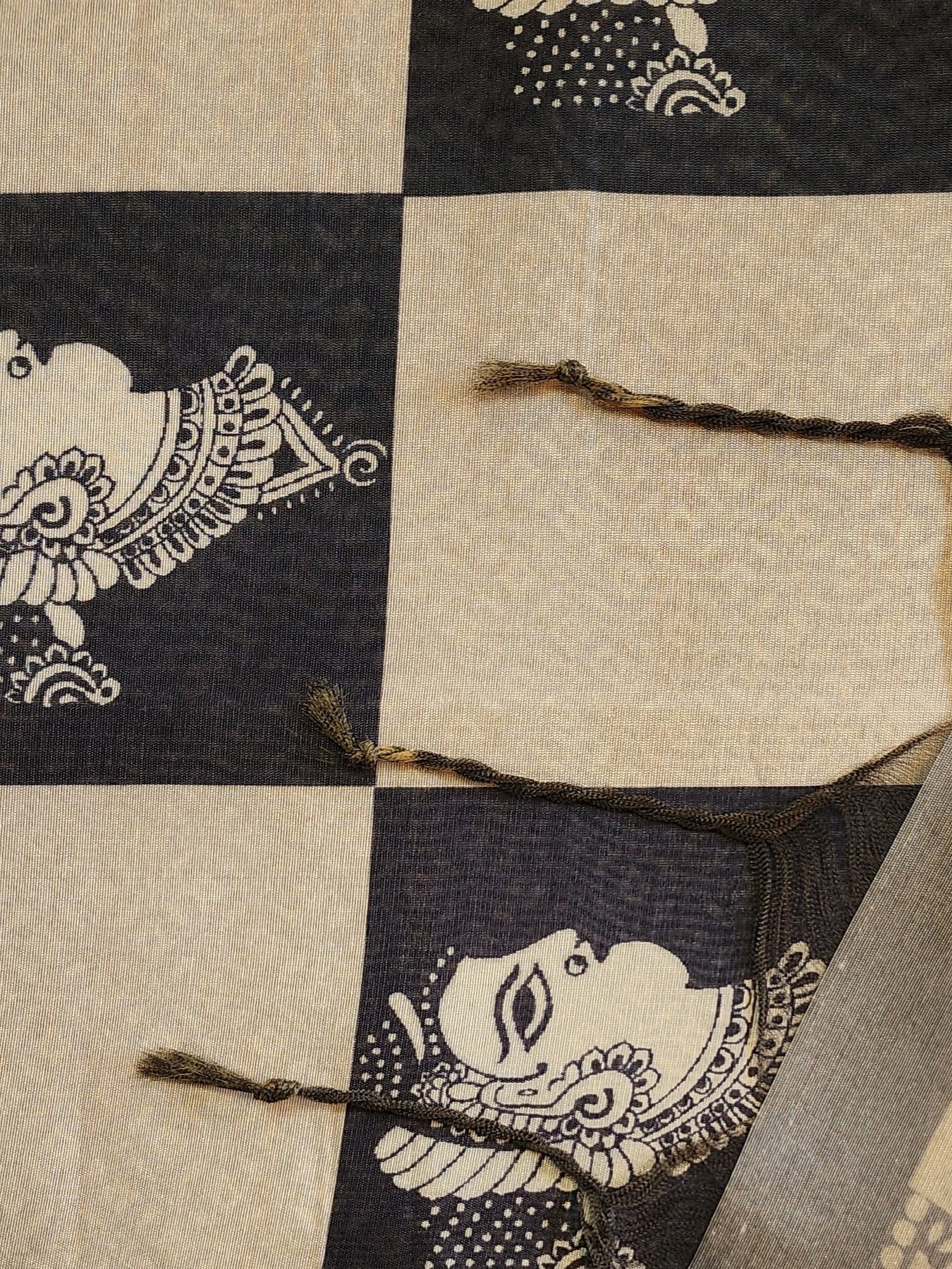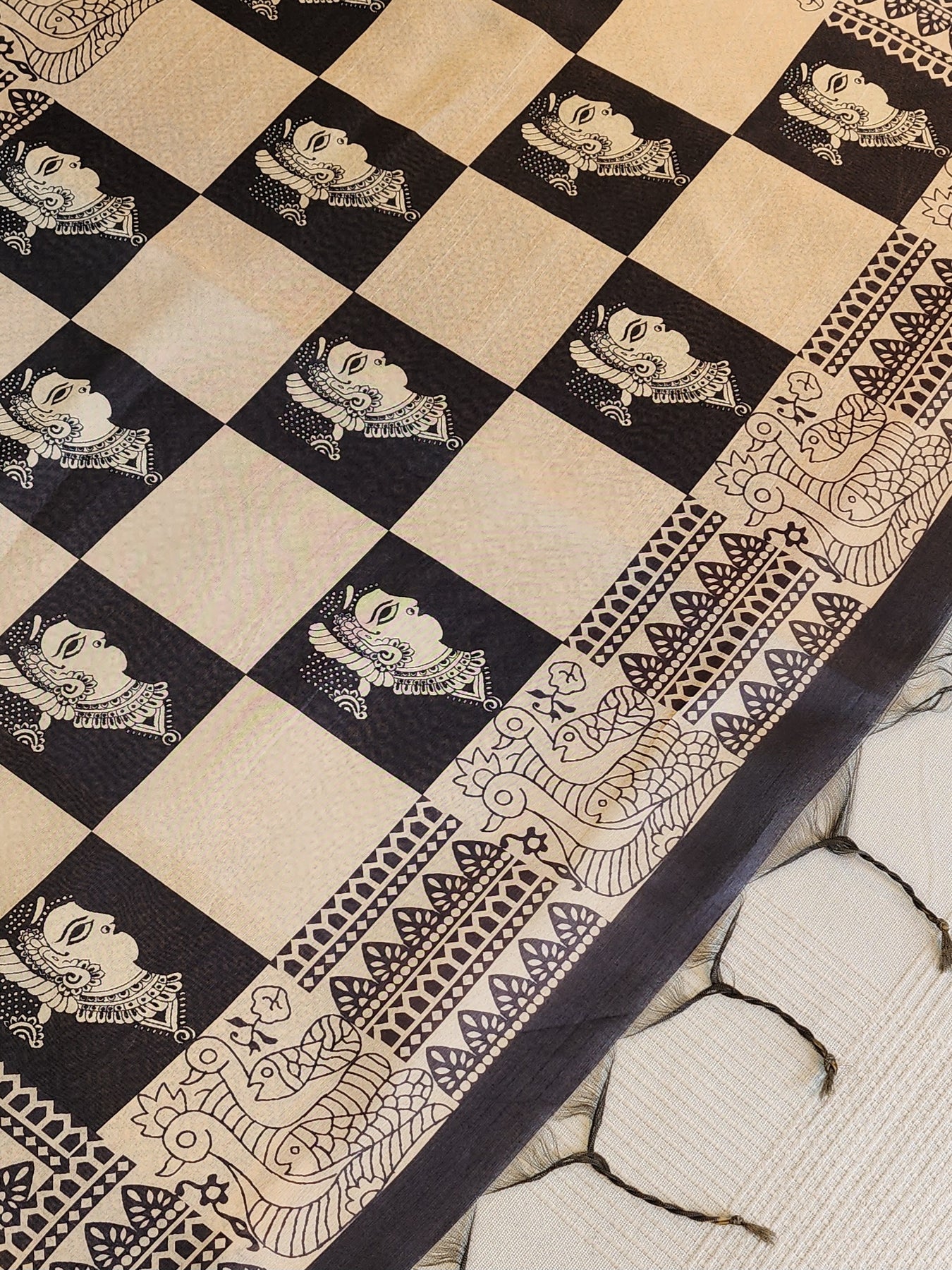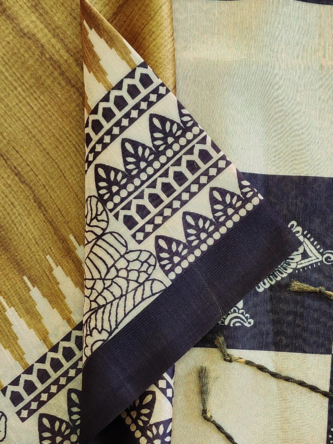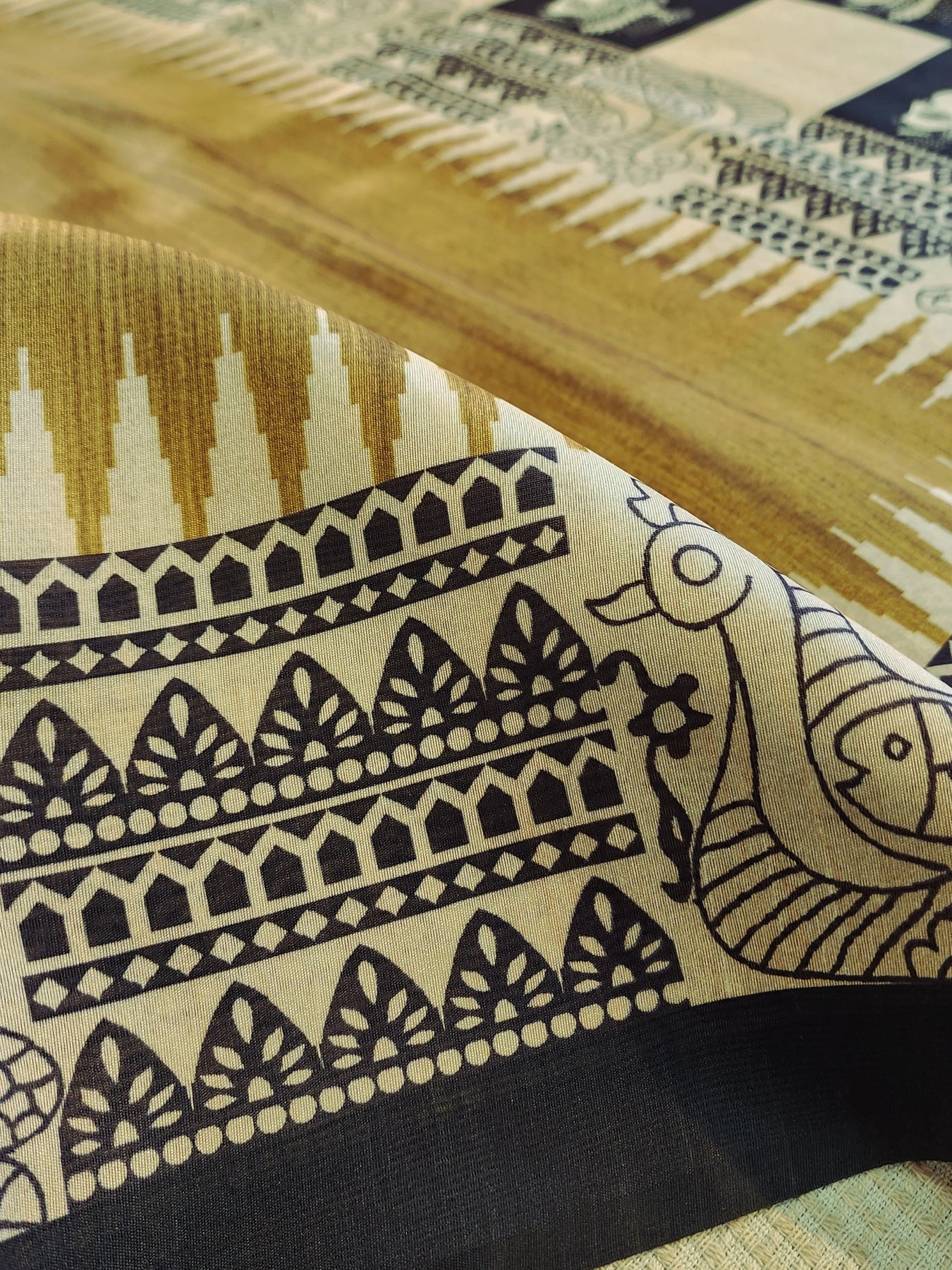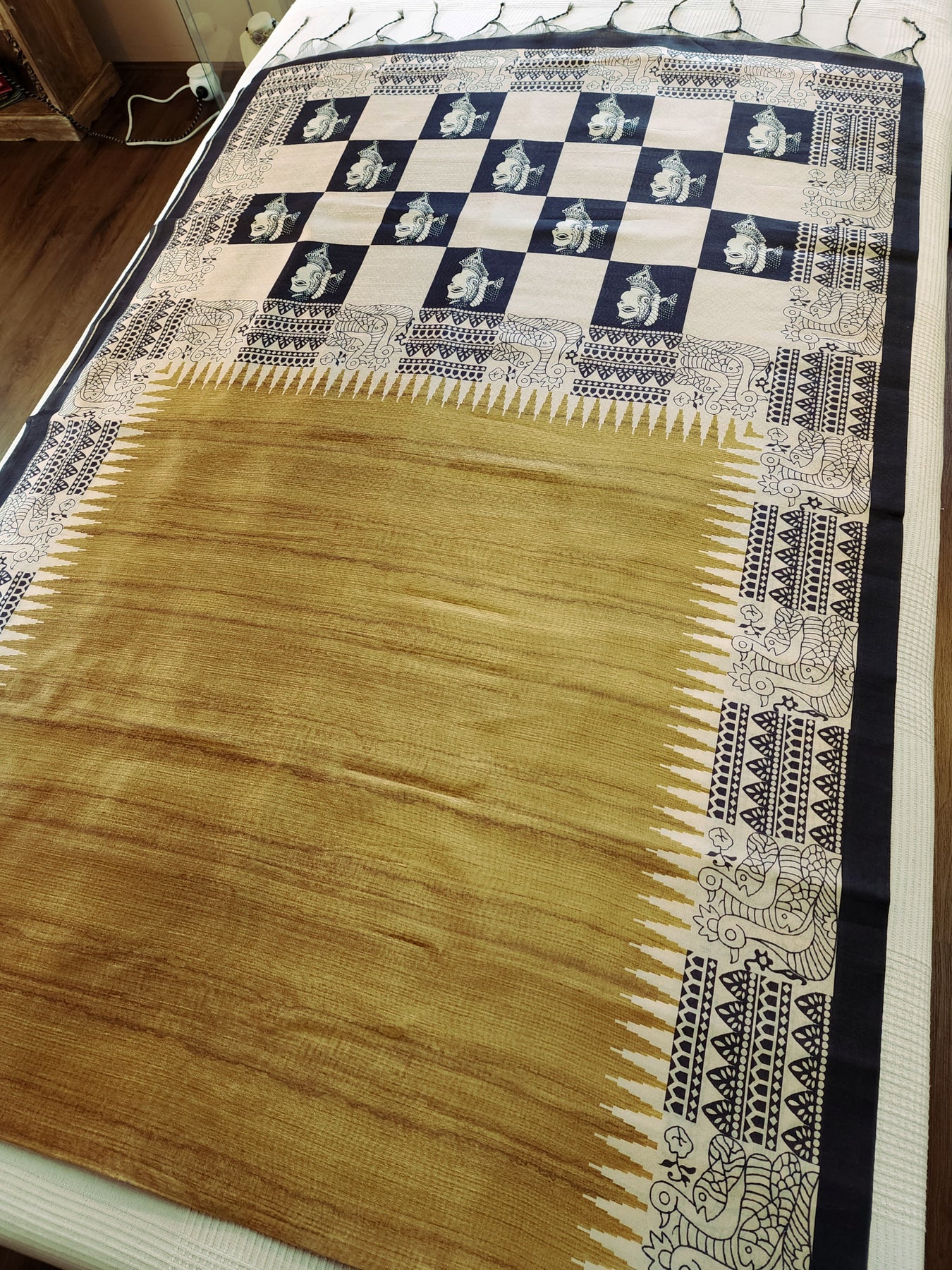 • An elegant Semi Tussar Silk Saree with Madhubani Borders.