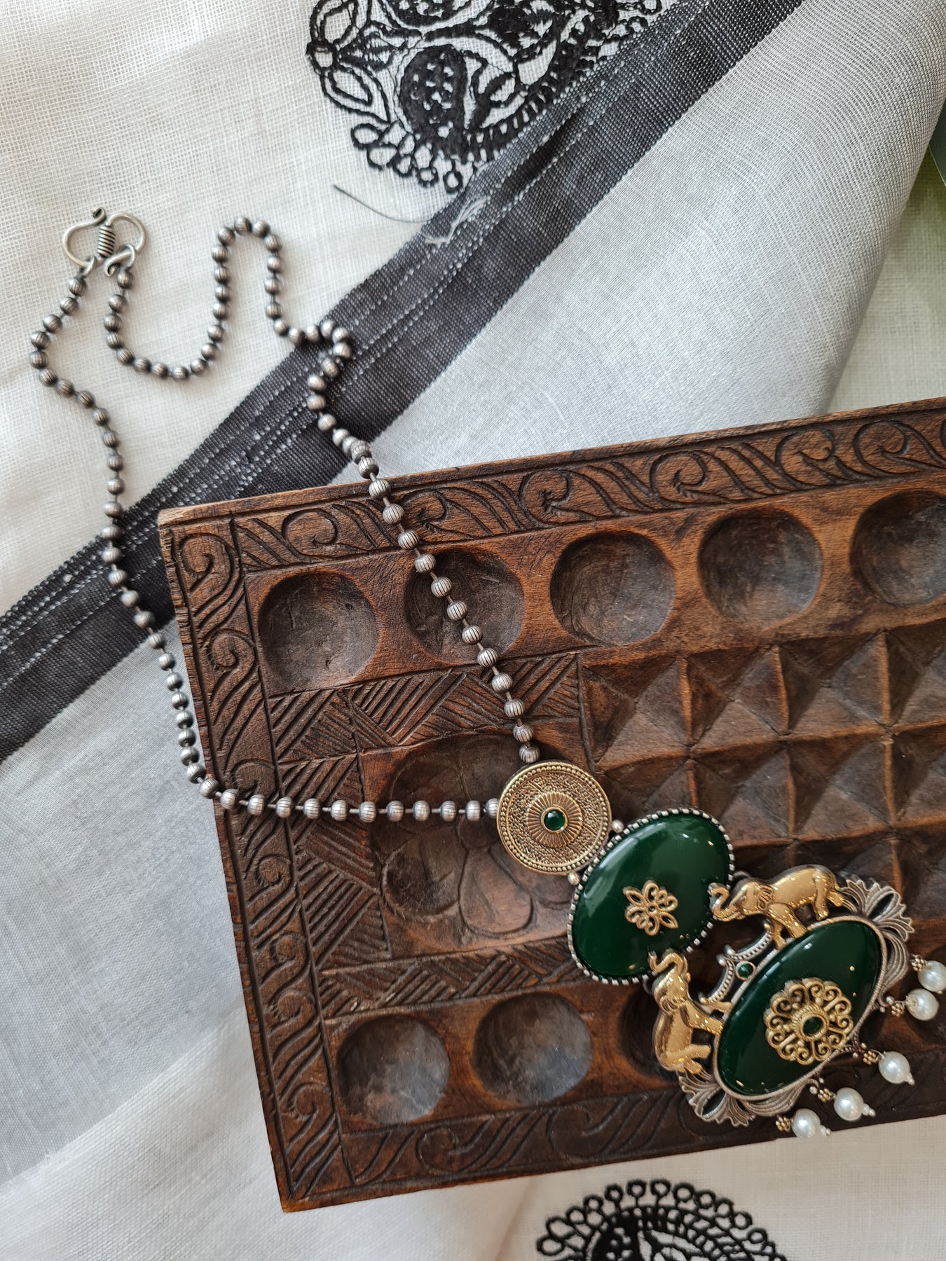 [{"id":46733907853544,"title":"Default Title","option1":"Default Title","option2":null,"option3":null,"sku":null,"requires_shipping":true,"taxable":true,"featured_image":null,"available":false,"name":"Dual Tone German Silver Necklace with Earrings","public_title":null,"options":["Default Title"],"price":11000,"weight":300,"compare_at_price":null,"inventory_quantity":0,"inventory_management":"shopify","inventory_policy":"deny","barcode":null,"requires_selling_plan":false,"selling_plan_allocations":[]}]