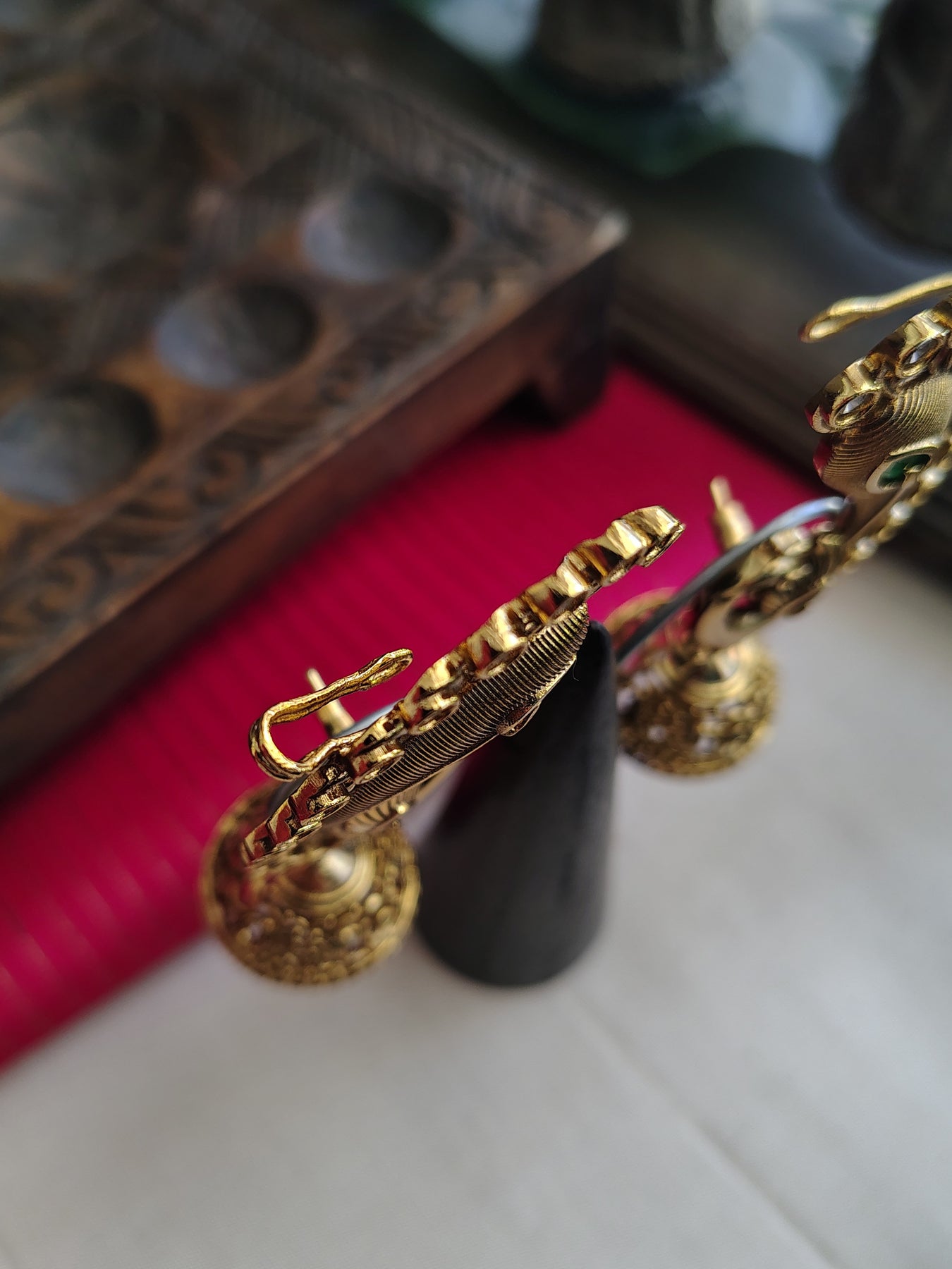 An elegant pair of Gold Jhumkas with Ear Cuffs