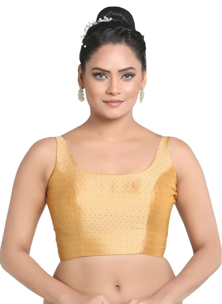 Gold Semi Raw Silk Sleeveless Padded Blouse