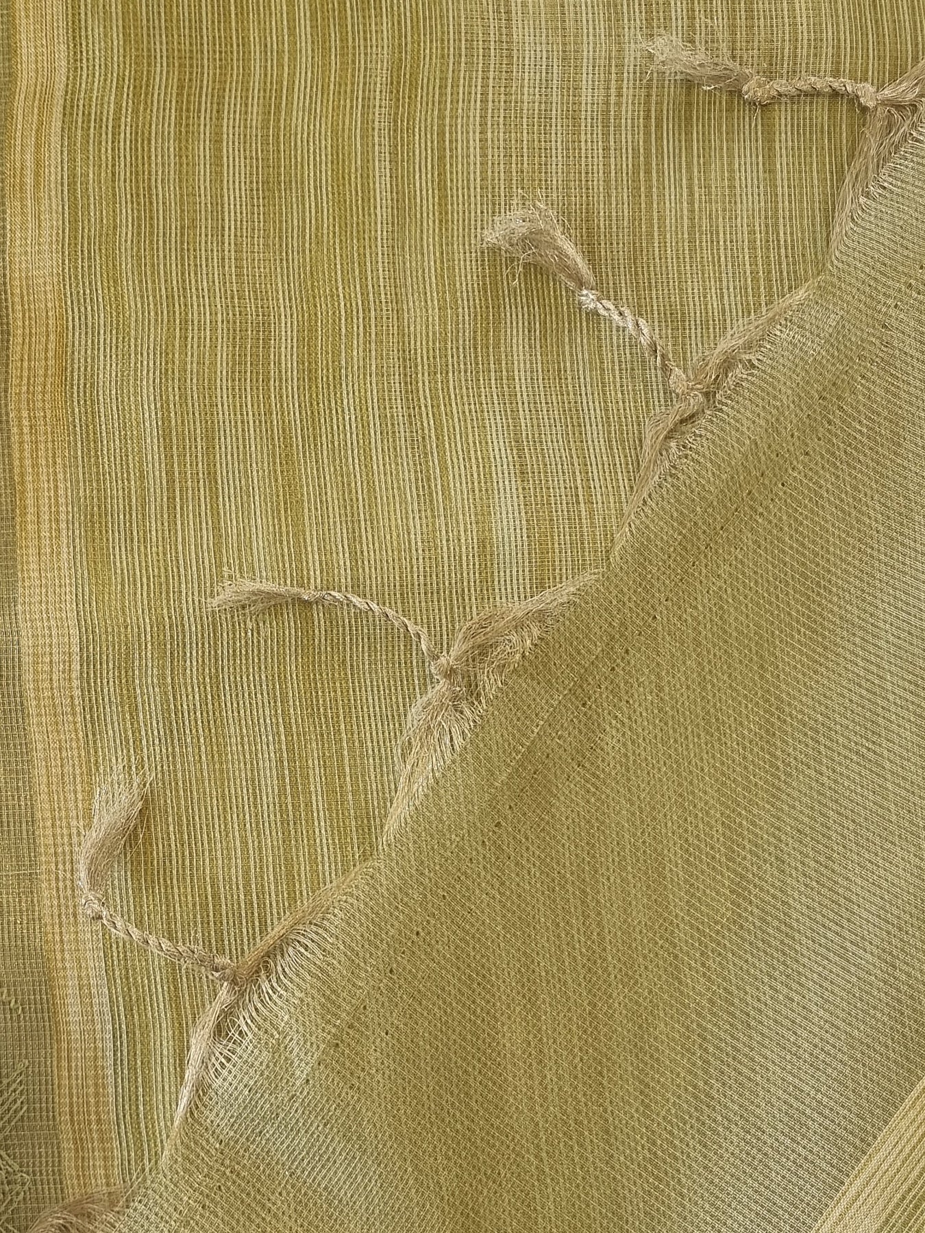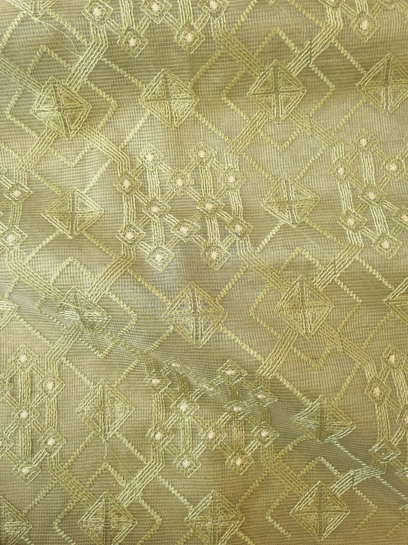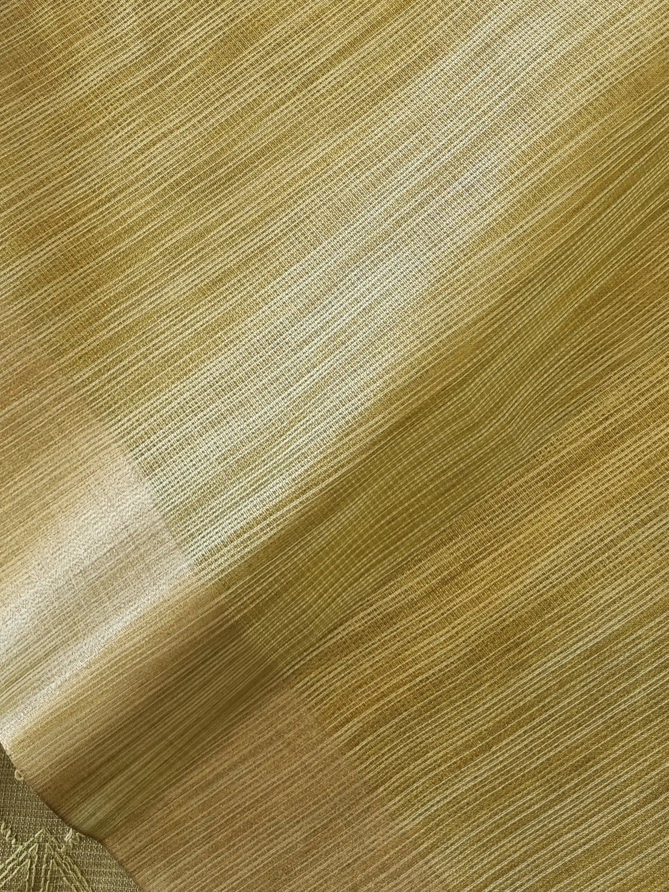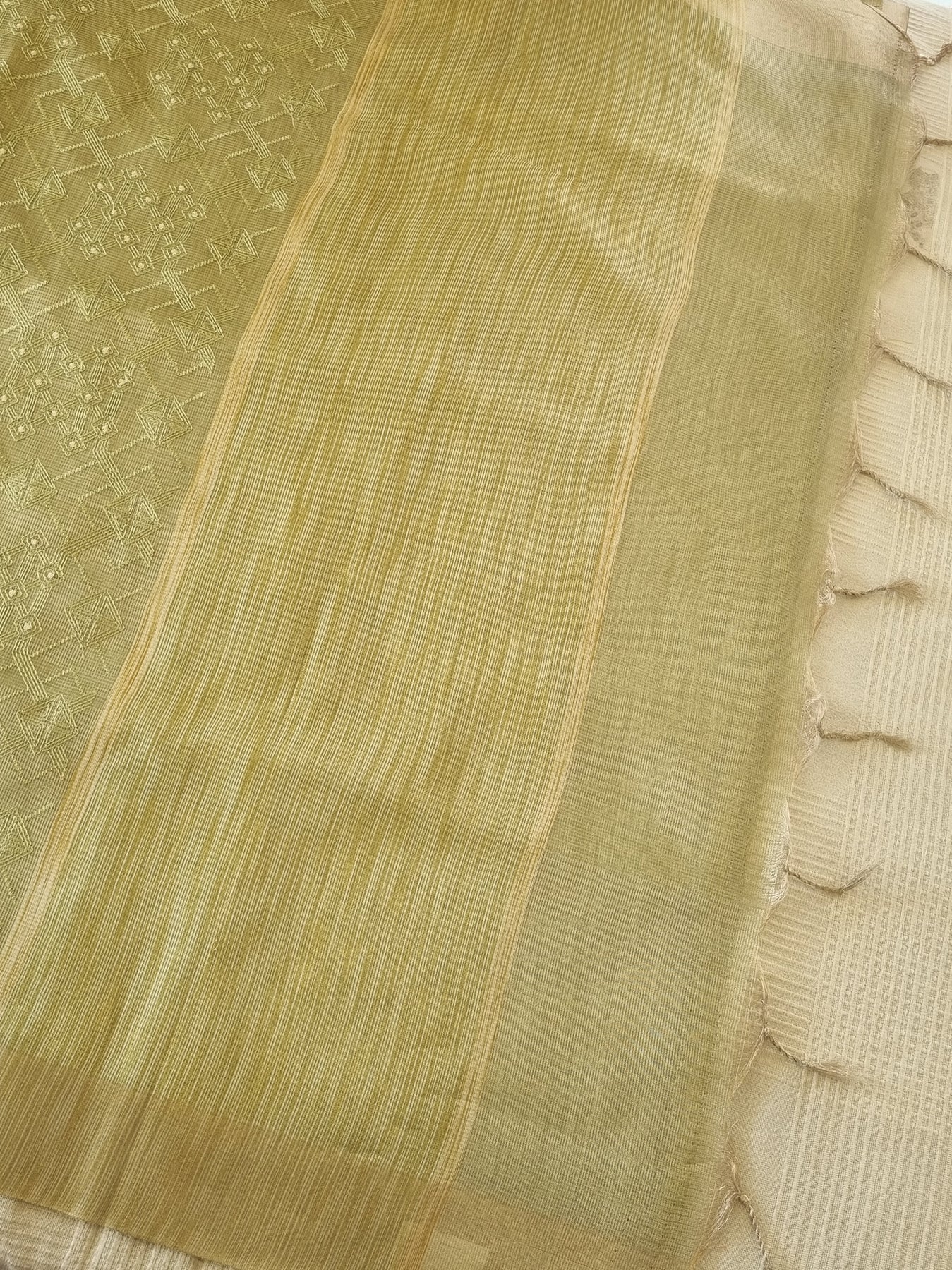 Tissue Saree in Light Green shade with Gold Borders and embroidery