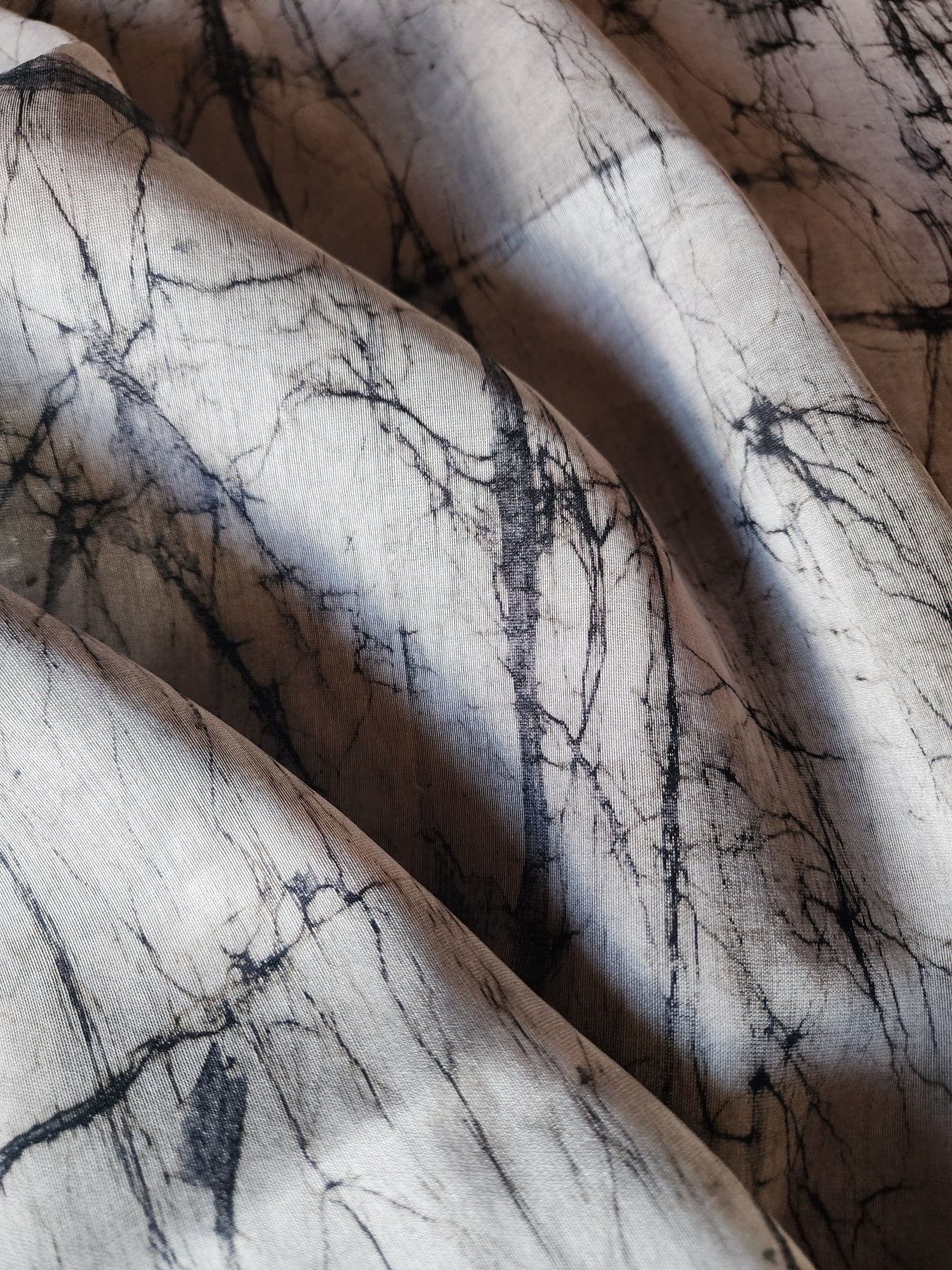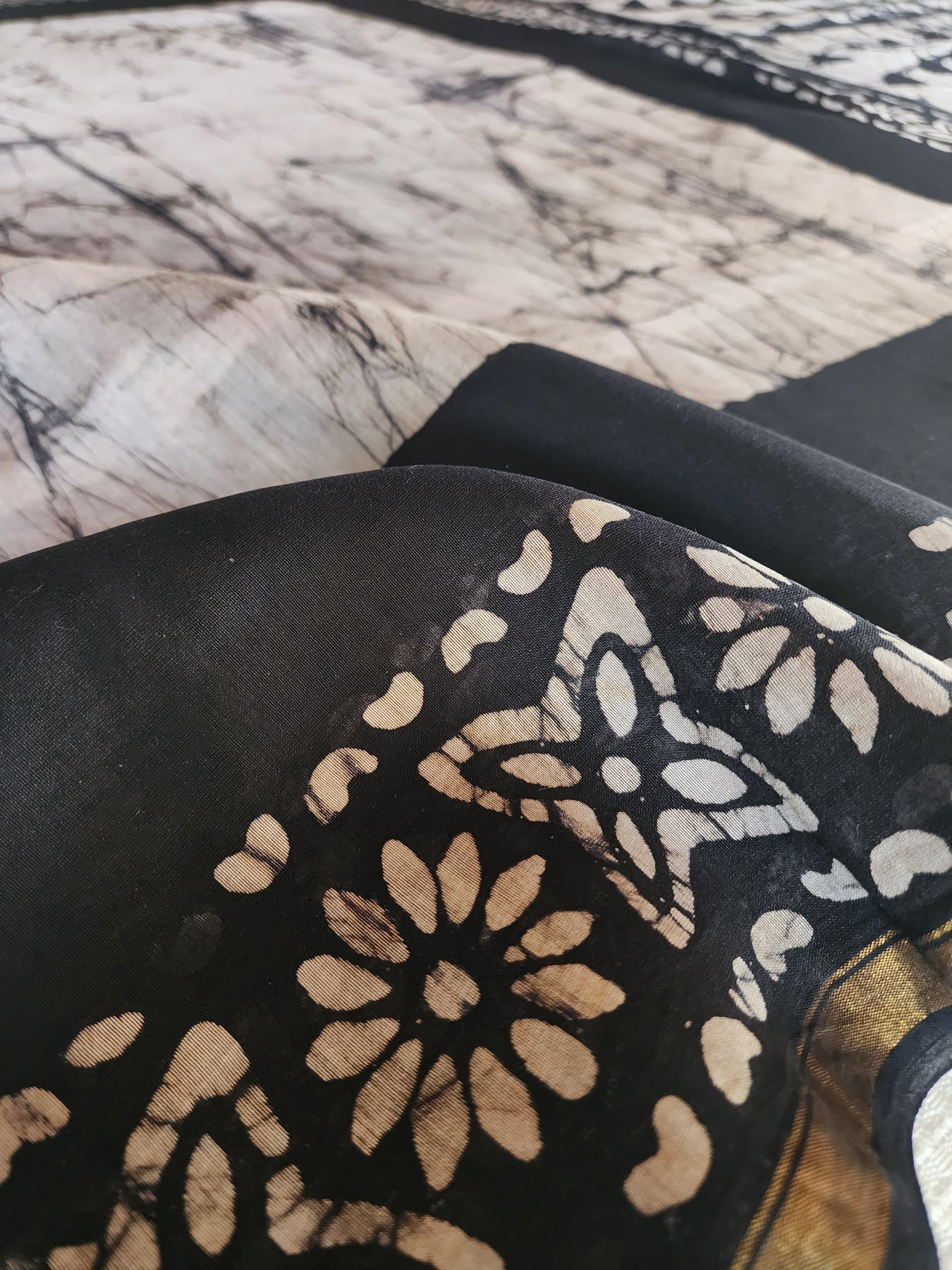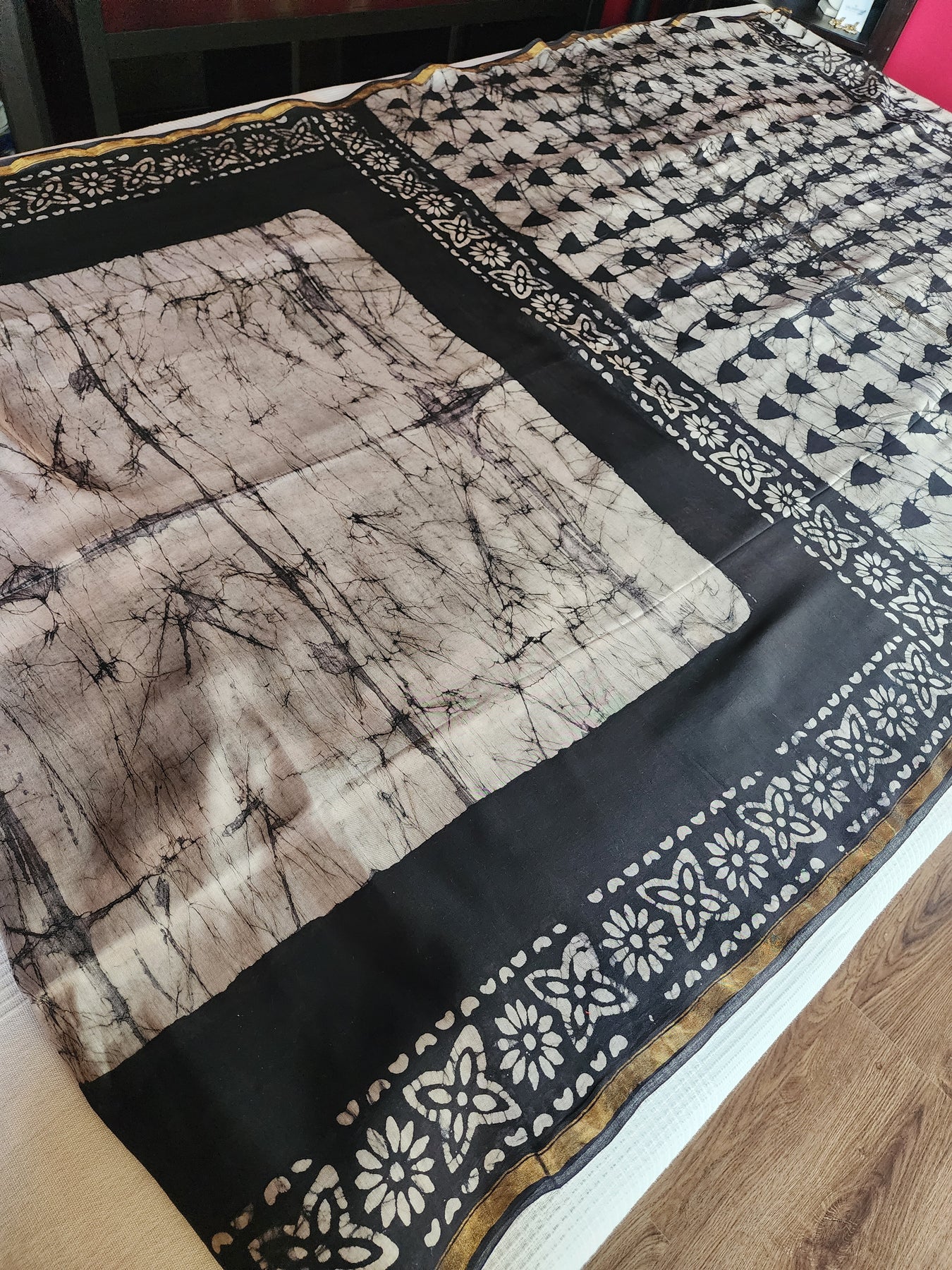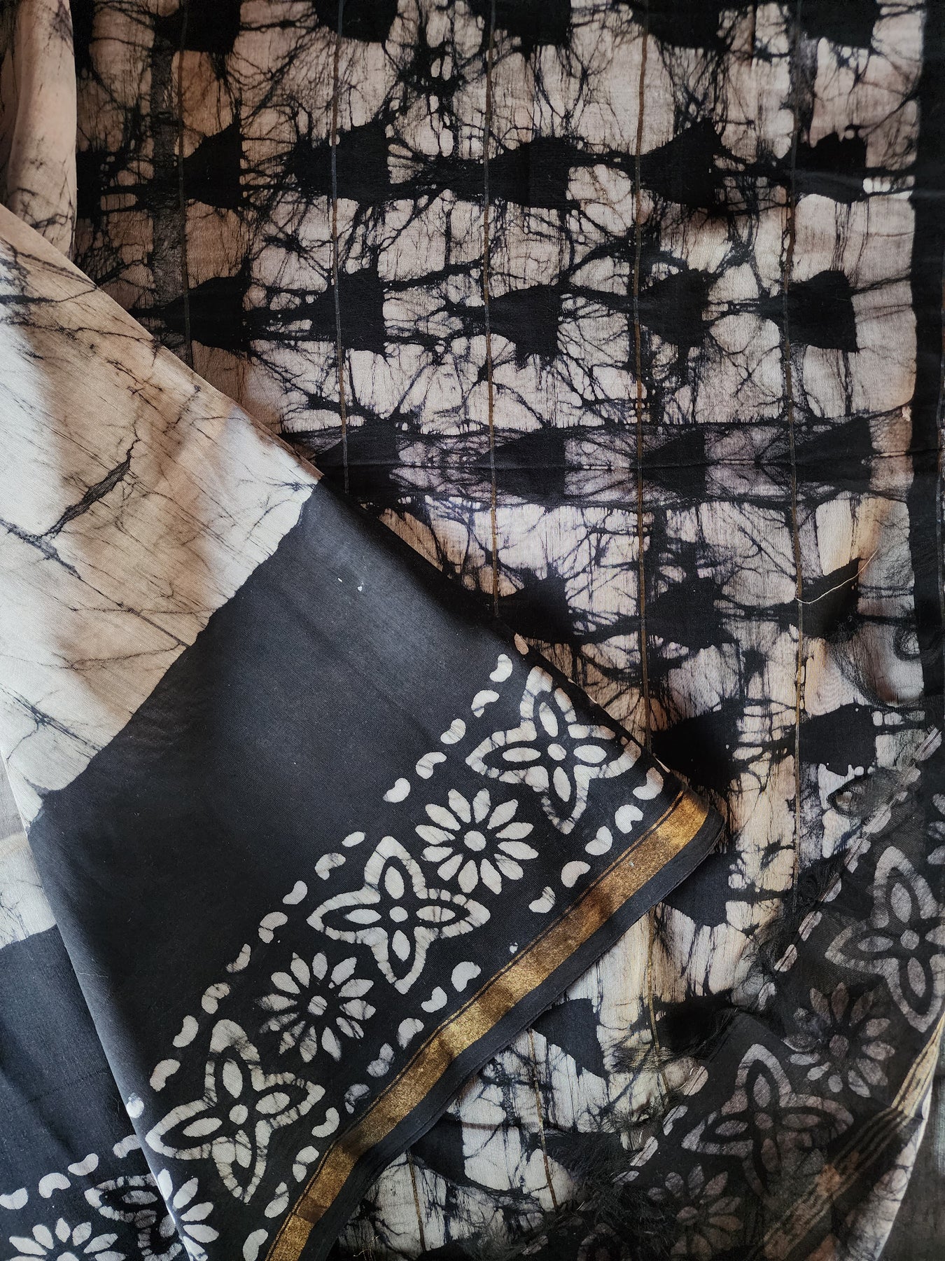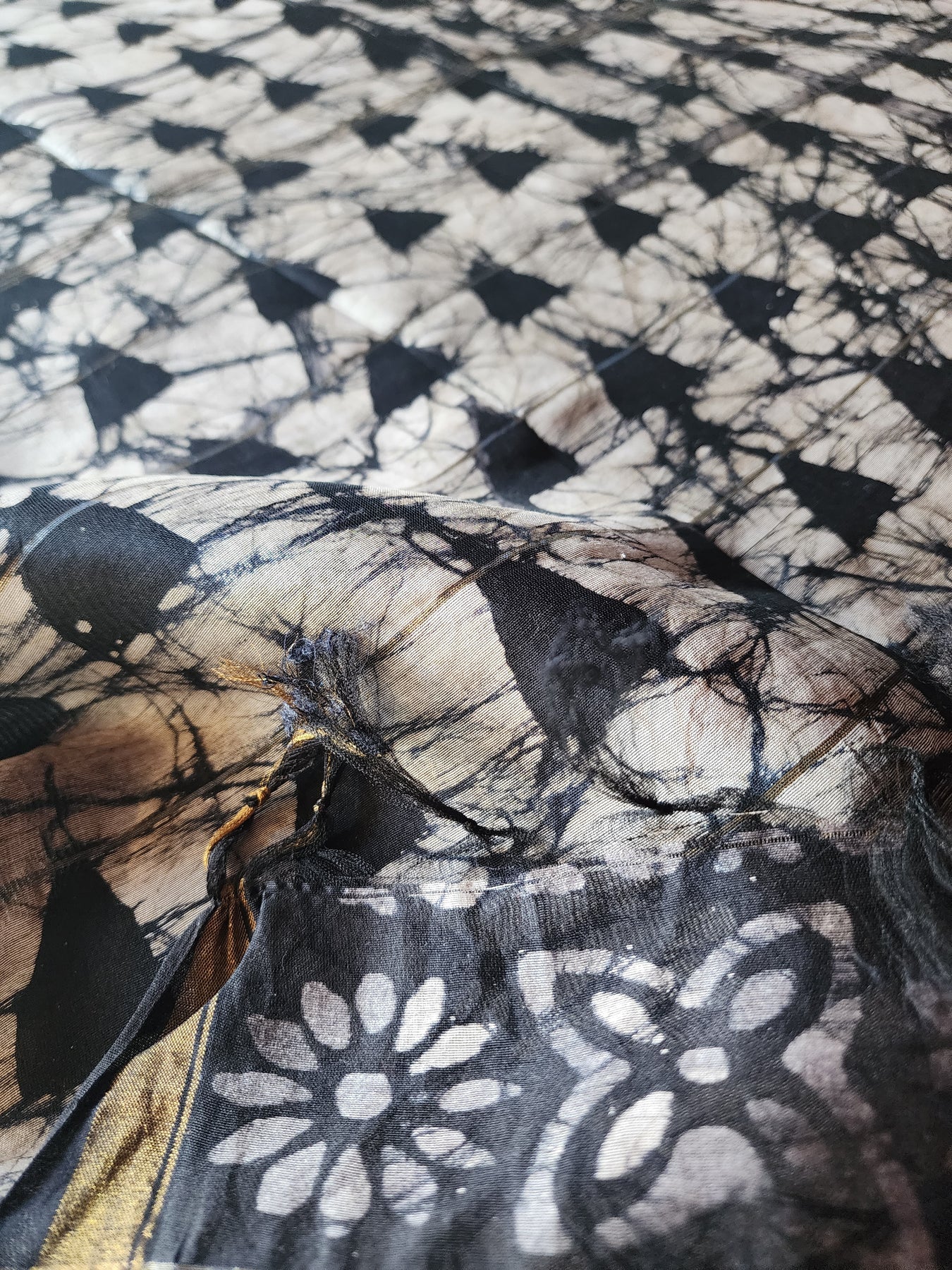 Abstract Tie-dye body with gold Zari Borders, finished with tassels