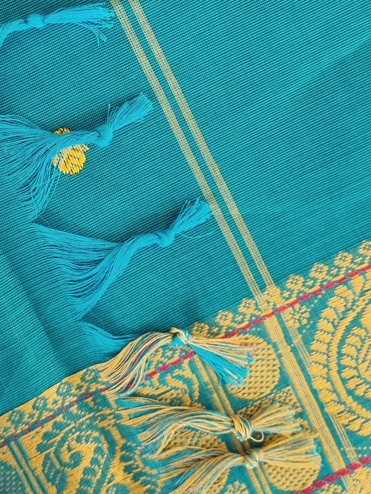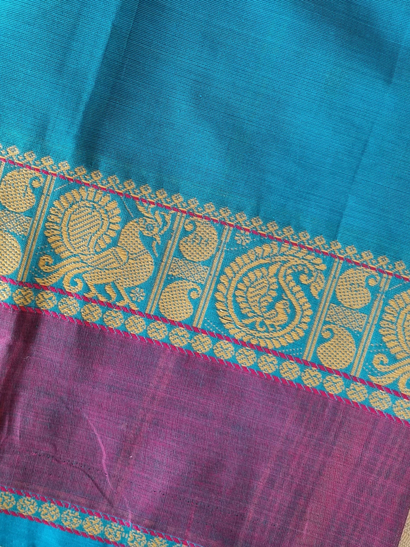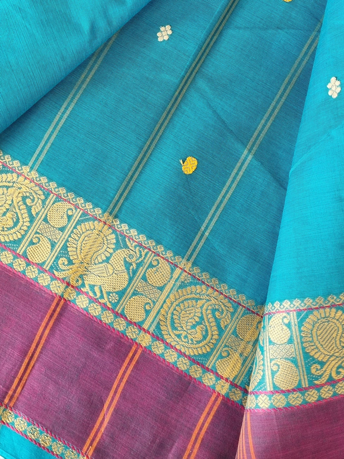with Blue and Purple woven Borders and a striped pallu