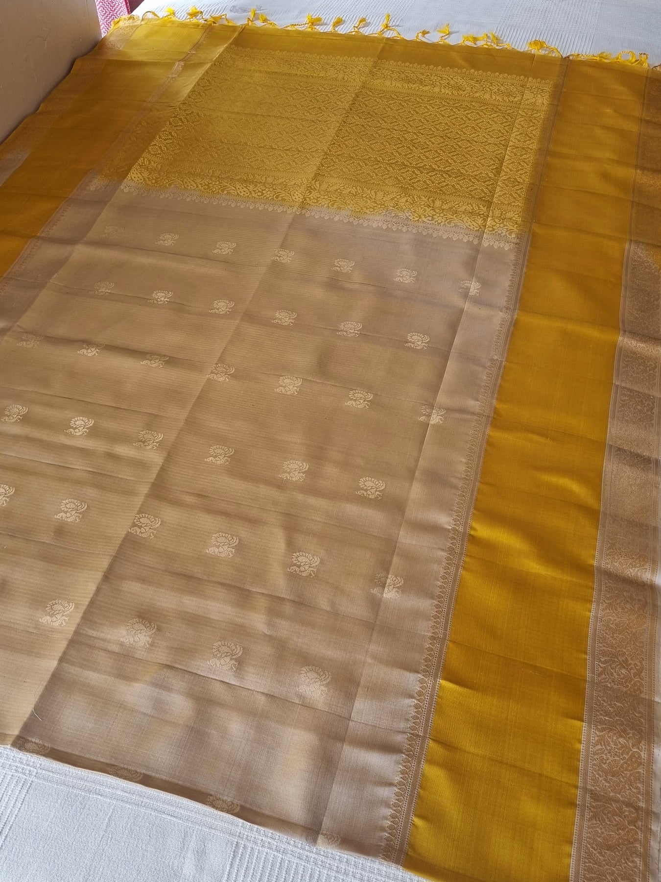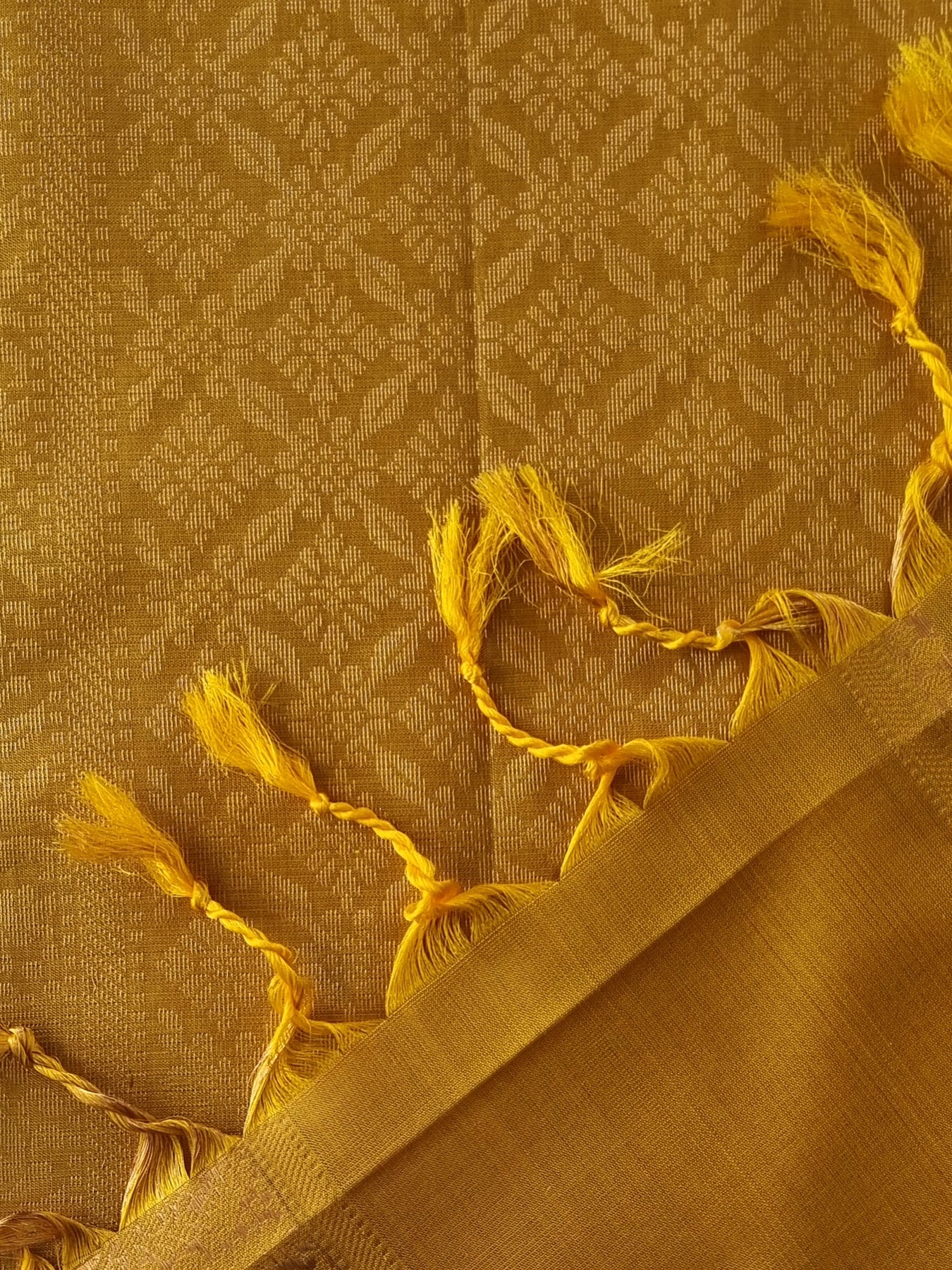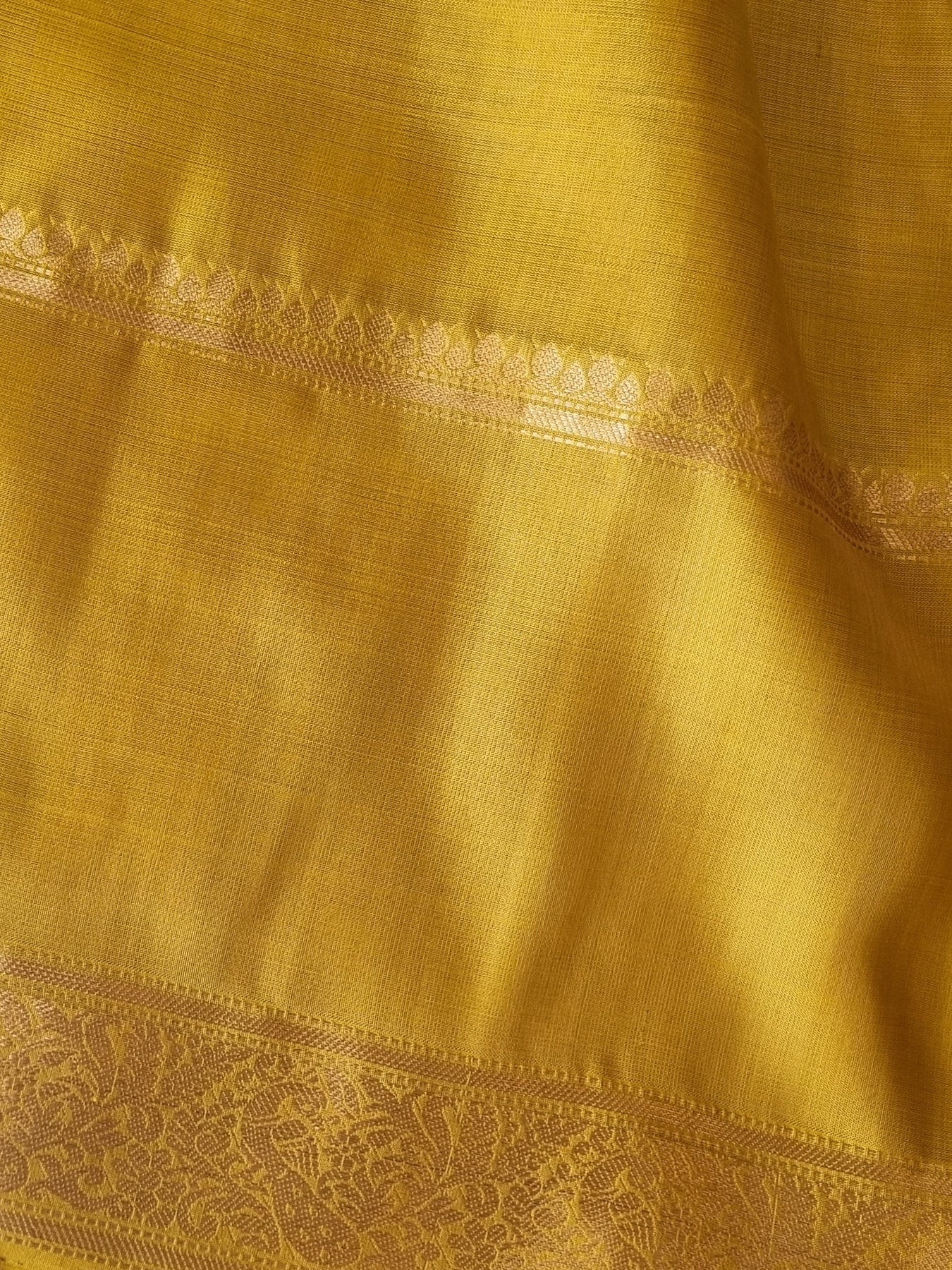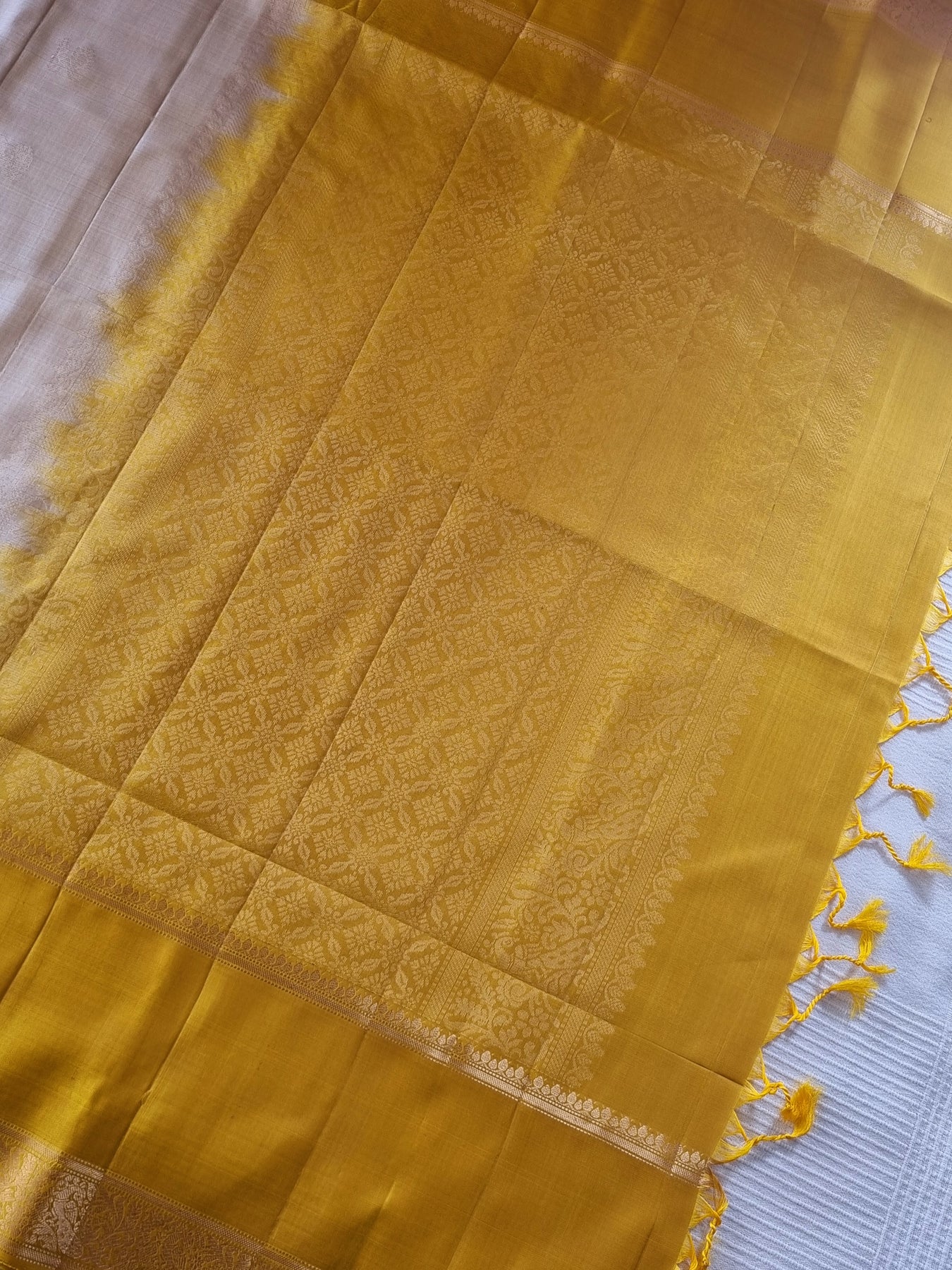 Beautiful Handwoven Soft Silk Saree with Gold zari Borders and intricately woven gold motifs on the body and a rich woven pallu