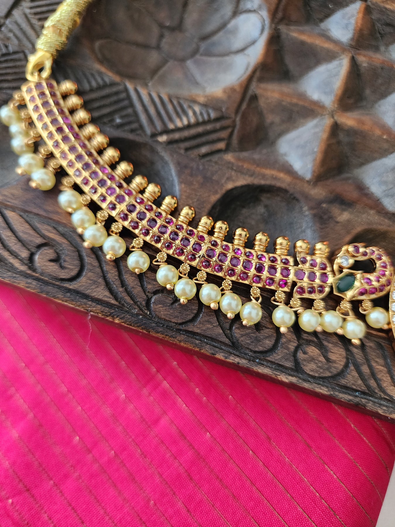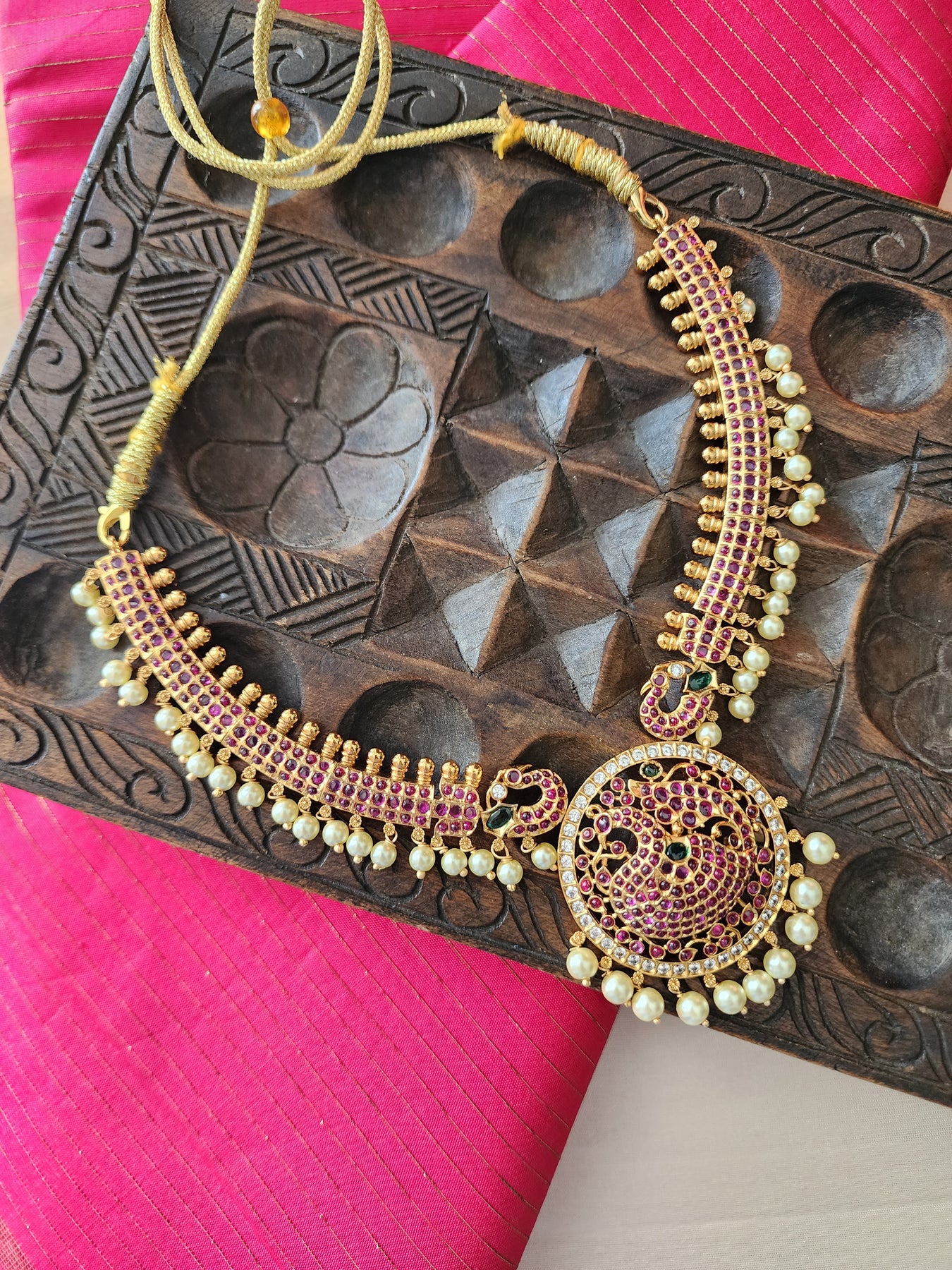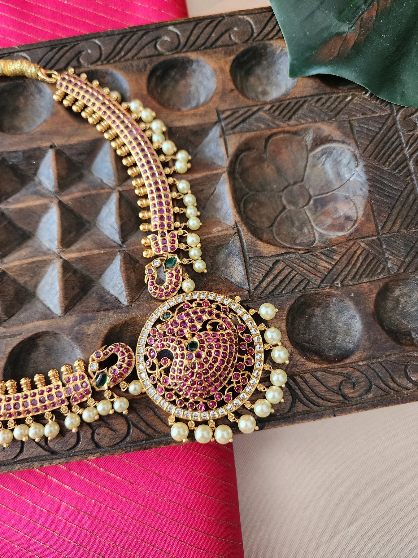 A beautiful necklace ornated with Premium Quality Kemp Stones and beautifully finished with Pearls, paired with Studs
