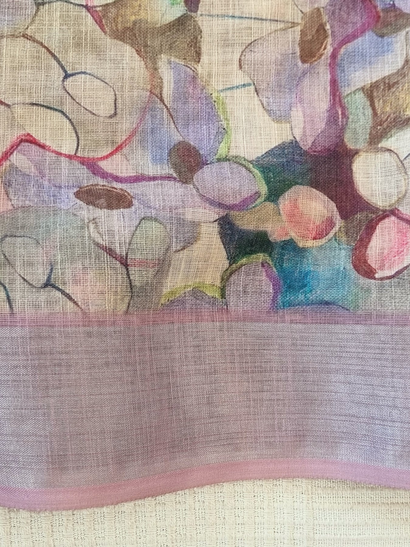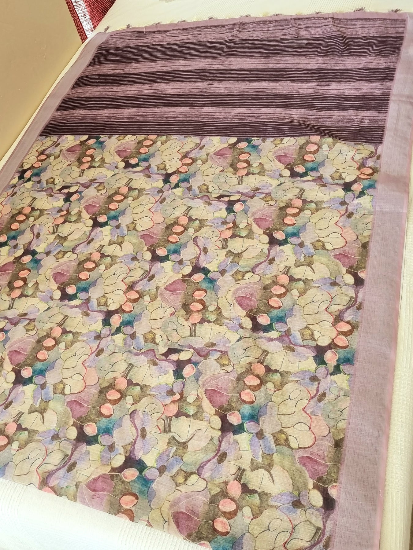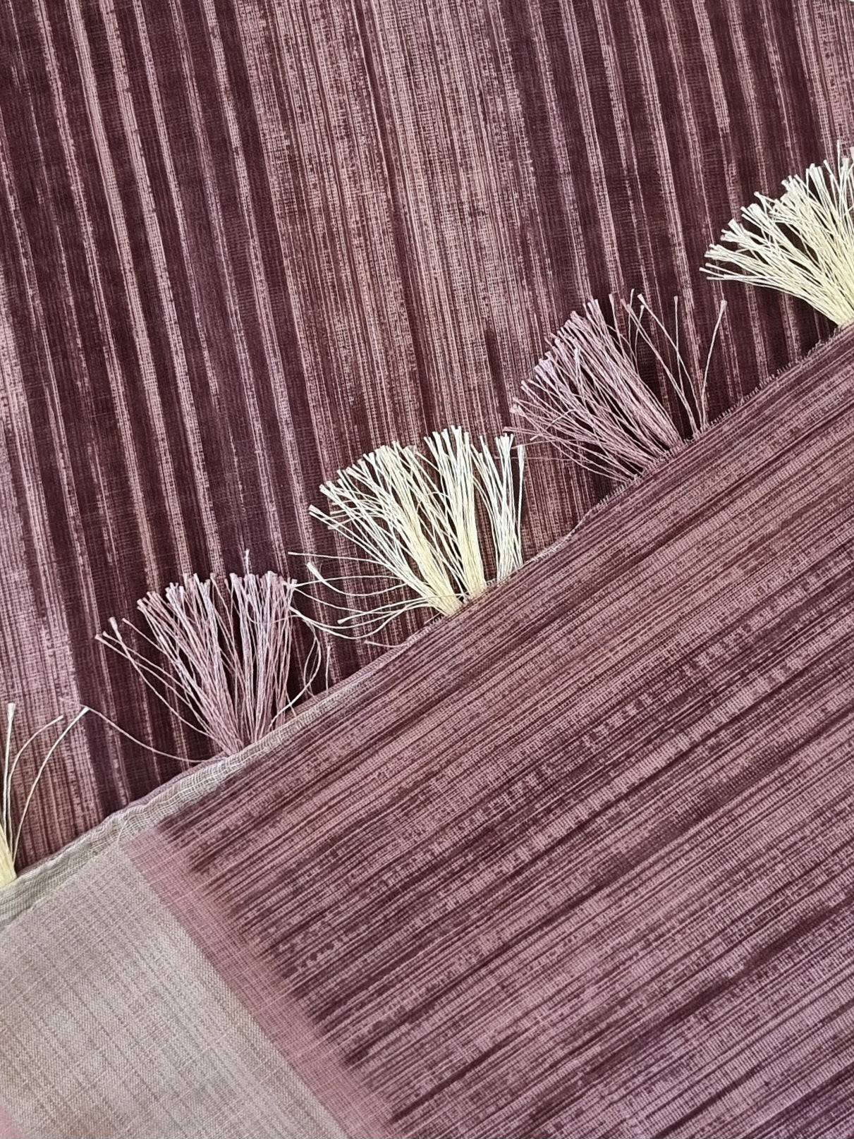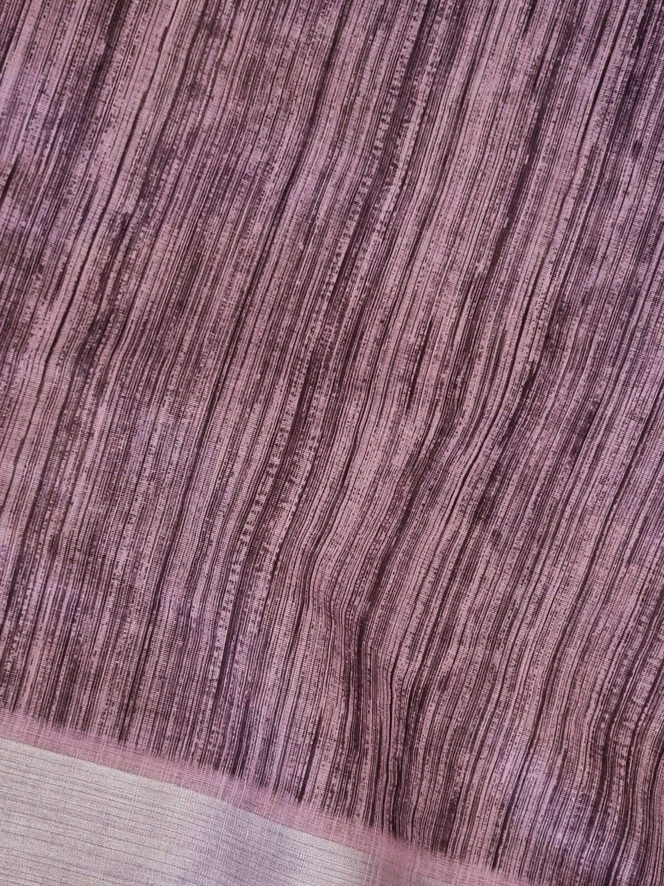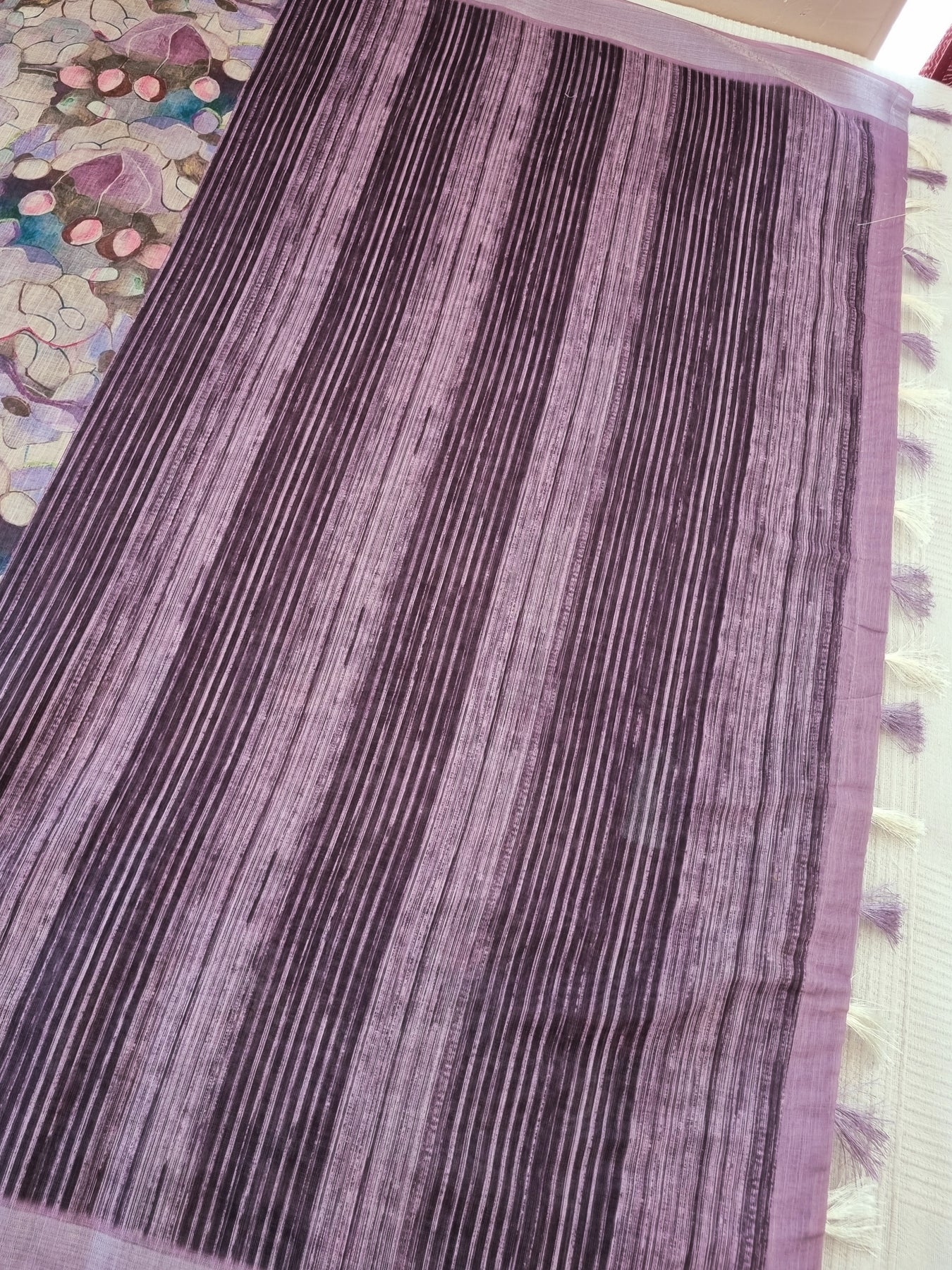 Lavender Linen Cotton Saree with Borders and Striped Pallu