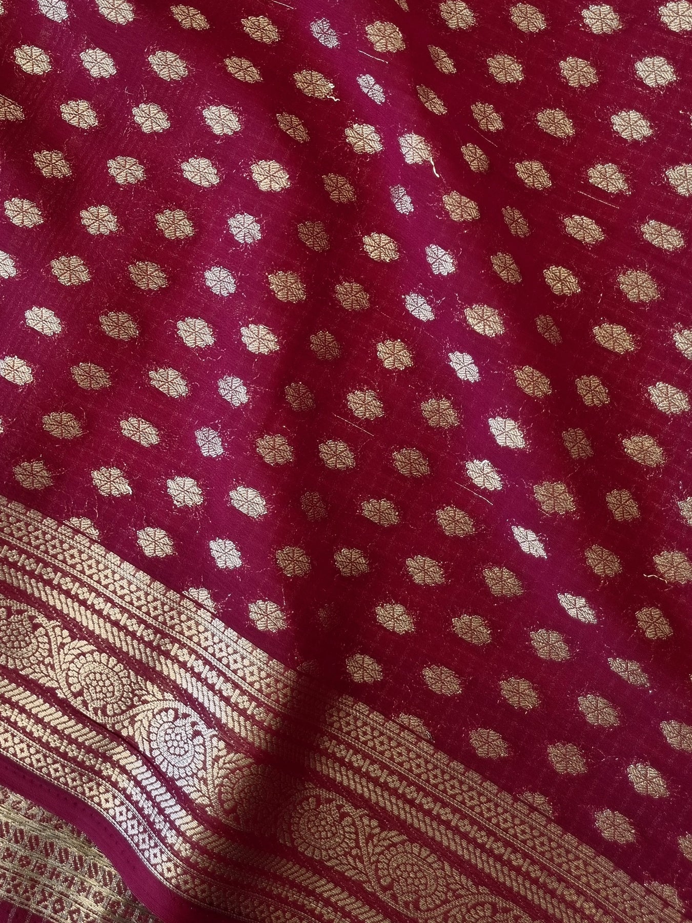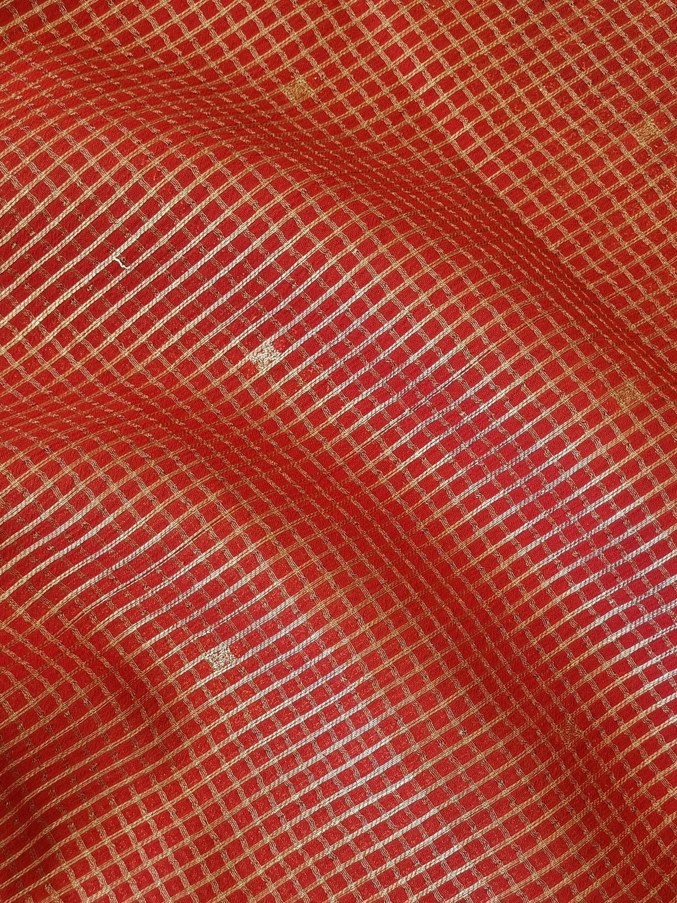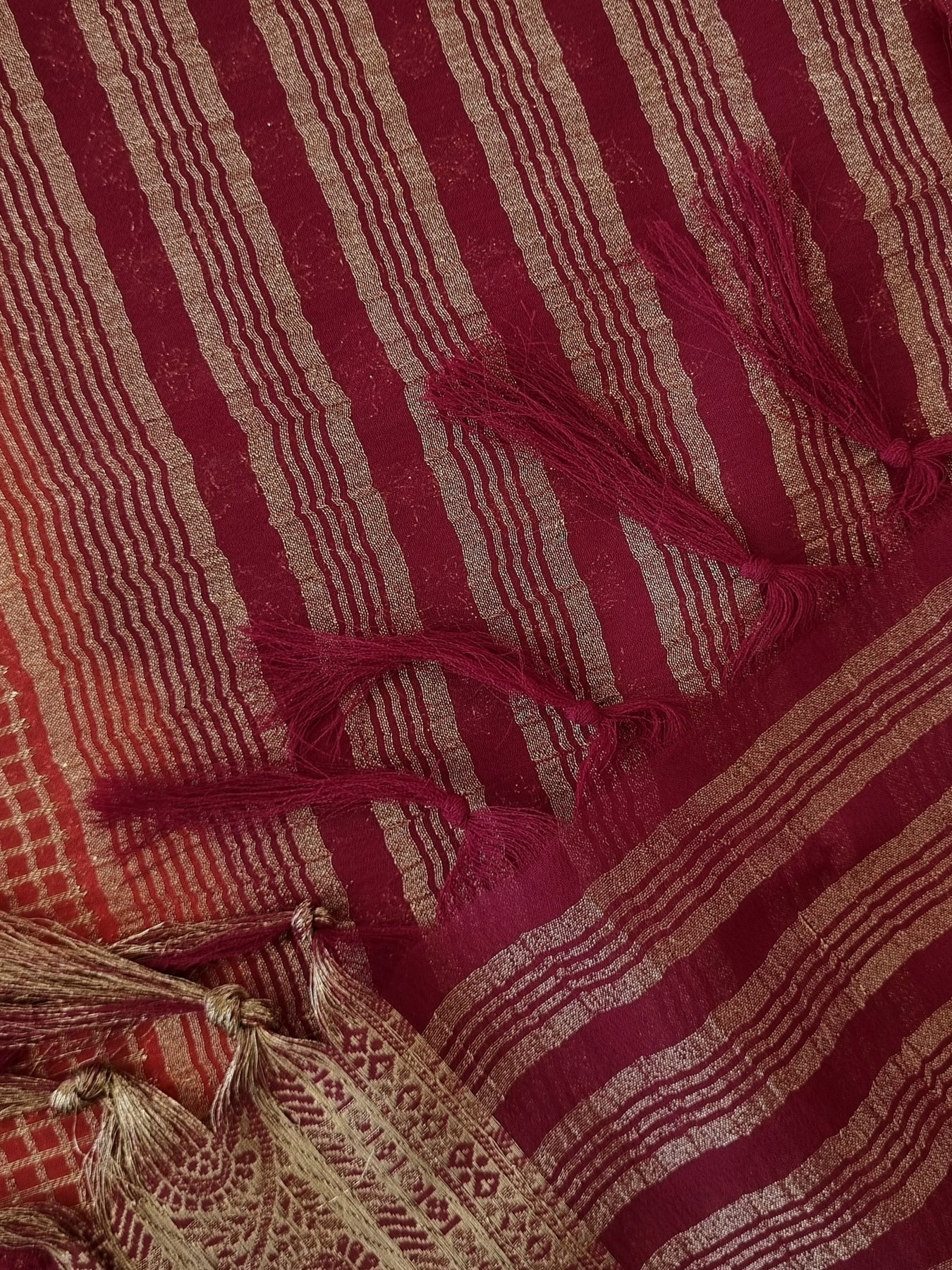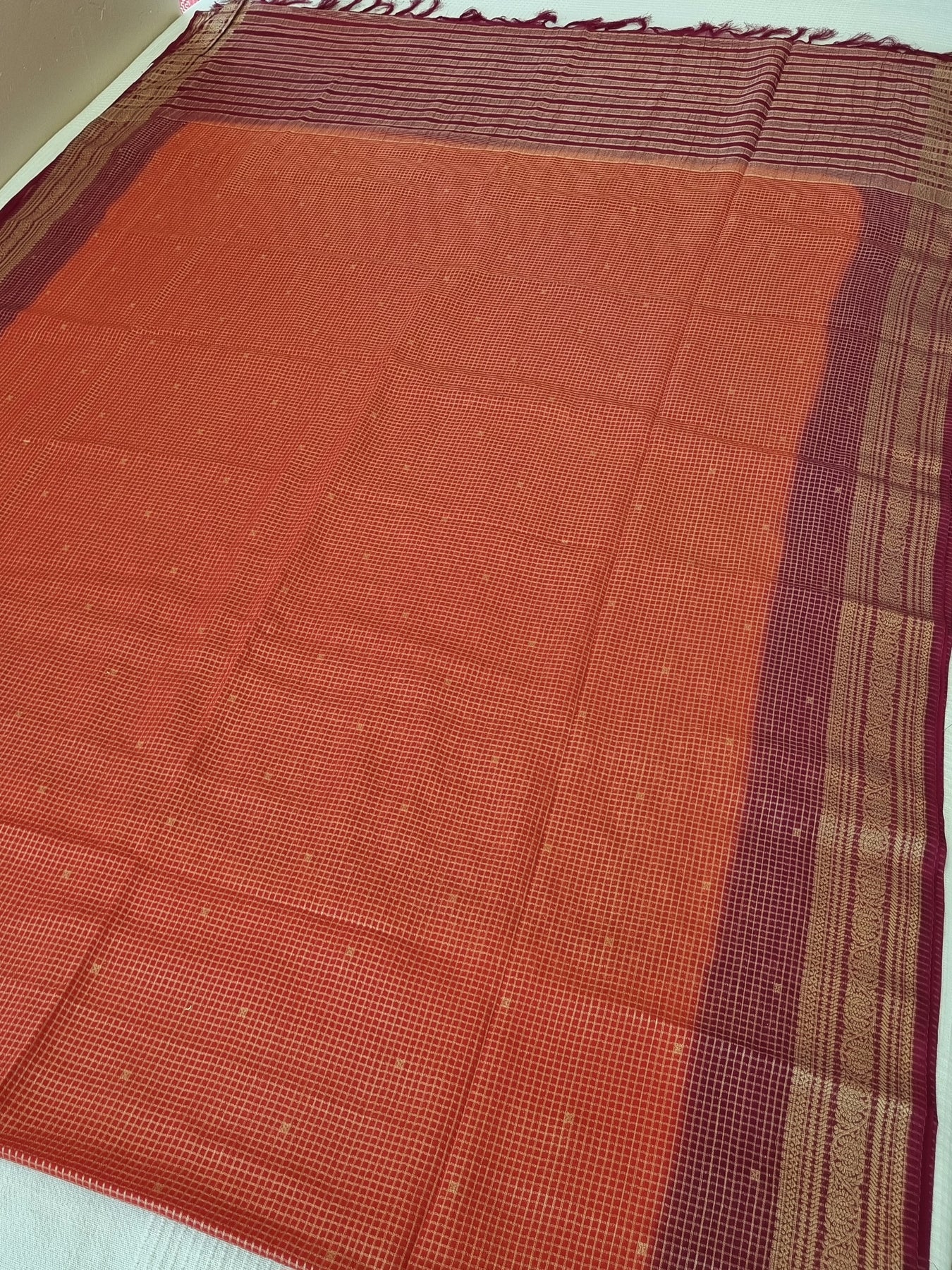 The elegant checked pattern and Striped pallu elevate the style quotient