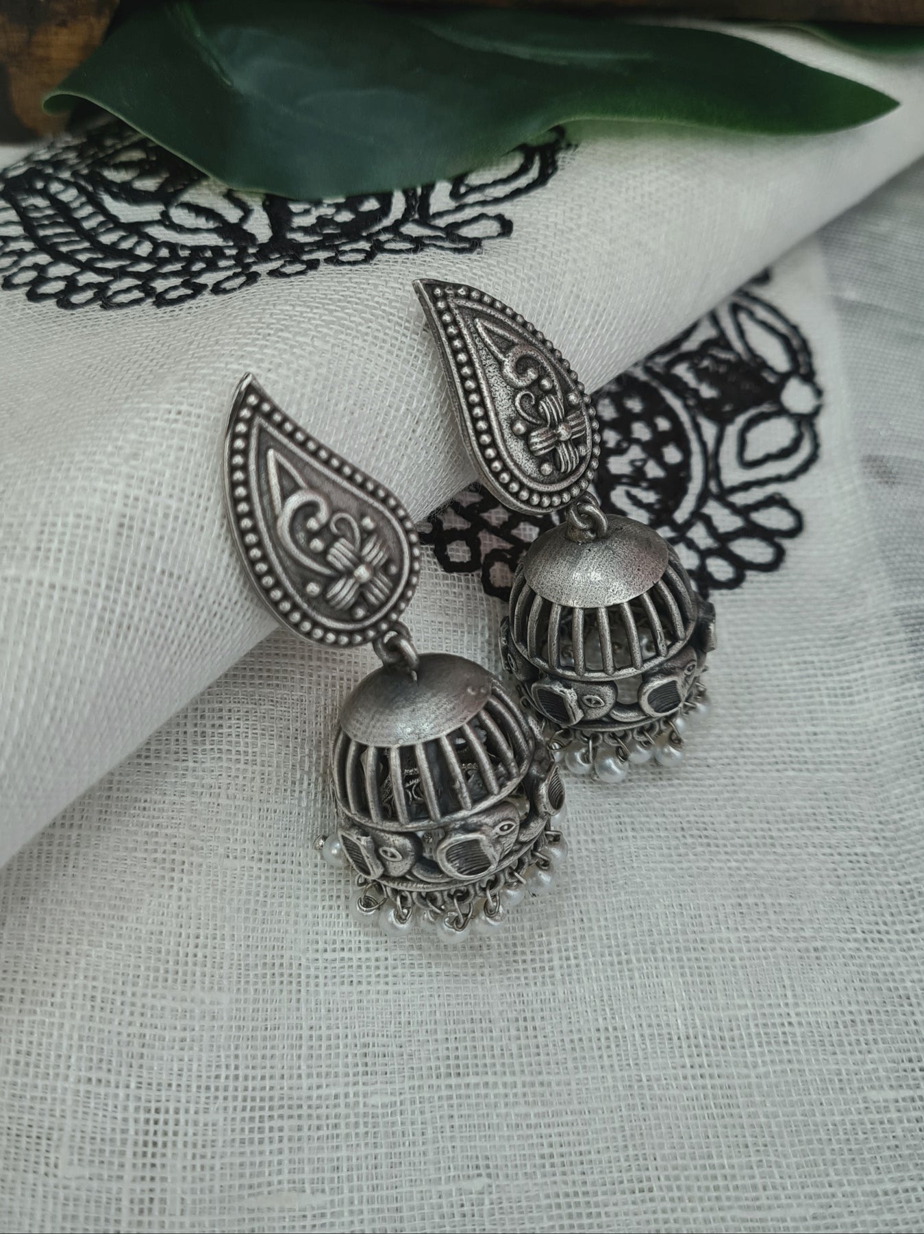[{"id":47686933315816,"title":"Default Title","option1":"Default Title","option2":null,"option3":null,"sku":null,"requires_shipping":true,"taxable":true,"featured_image":null,"available":false,"name":"Oxidised Silver Jhumkas","public_title":null,"options":["Default Title"],"price":4500,"weight":300,"compare_at_price":null,"inventory_quantity":0,"inventory_management":"shopify","inventory_policy":"deny","barcode":null,"requires_selling_plan":false,"selling_plan_allocations":[]}]