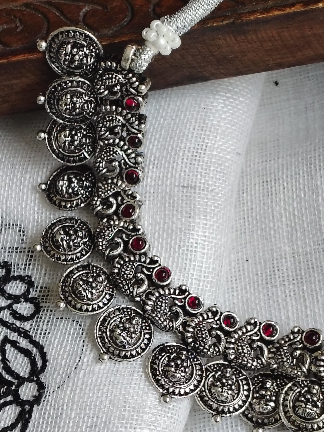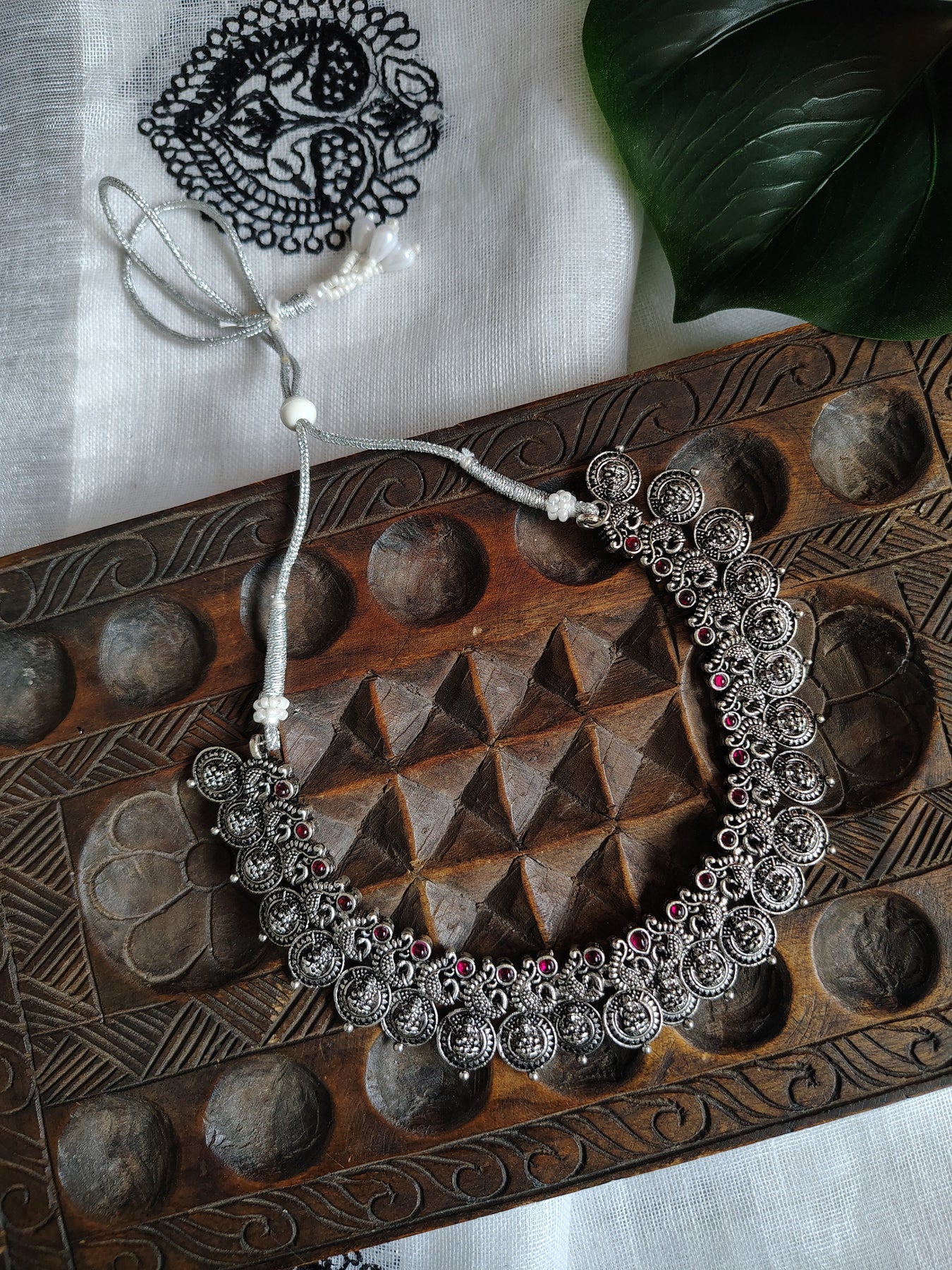 Oxidised Silver Lakshmi Necklace & Jhumkas