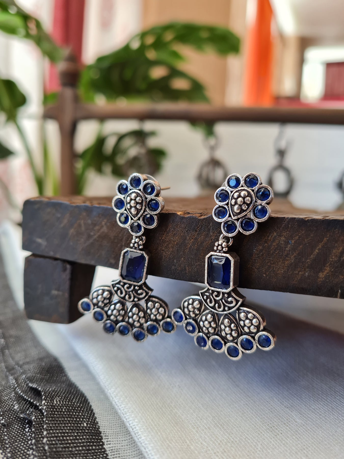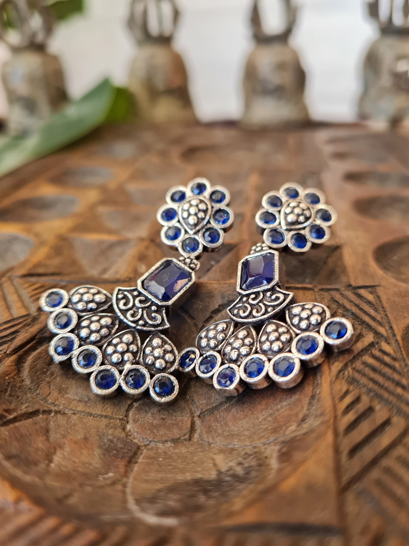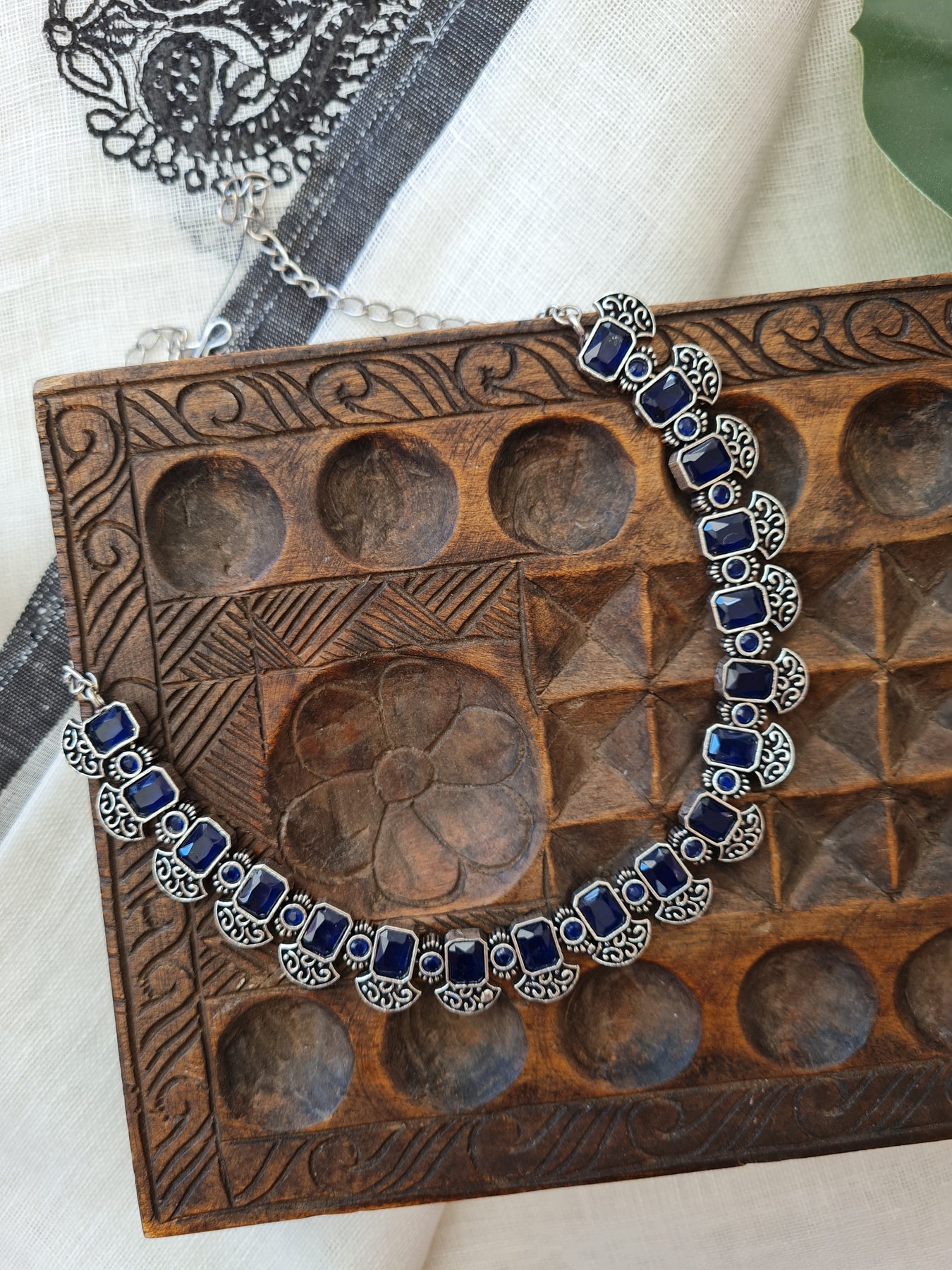 Oxidized Silver Necklace with Blue stones paired with matching Earrings