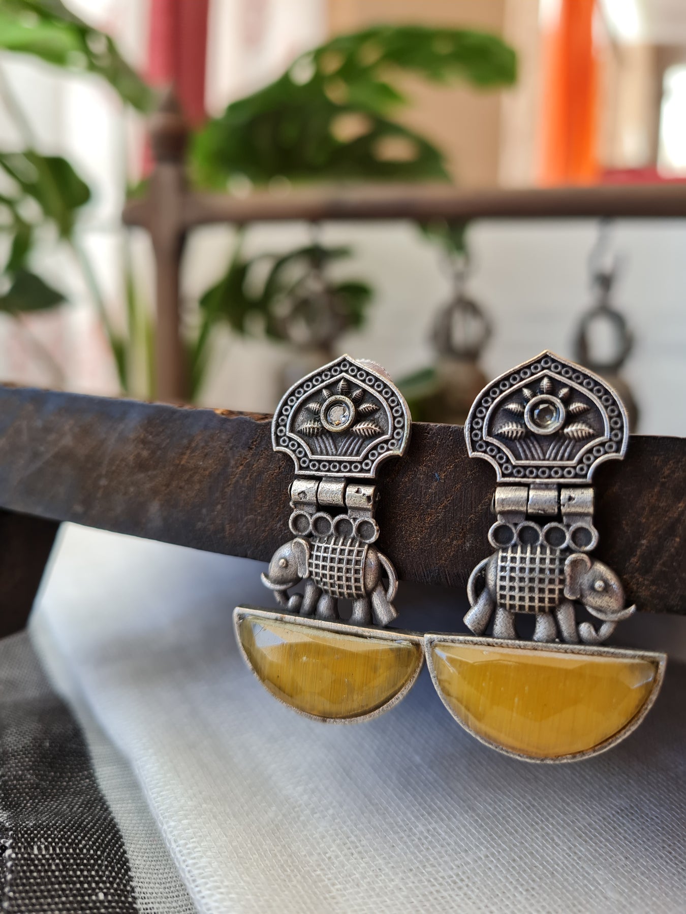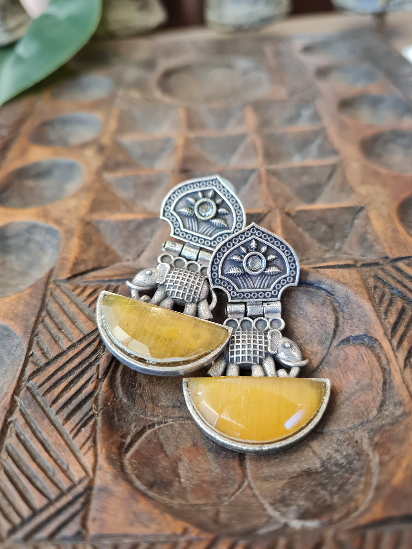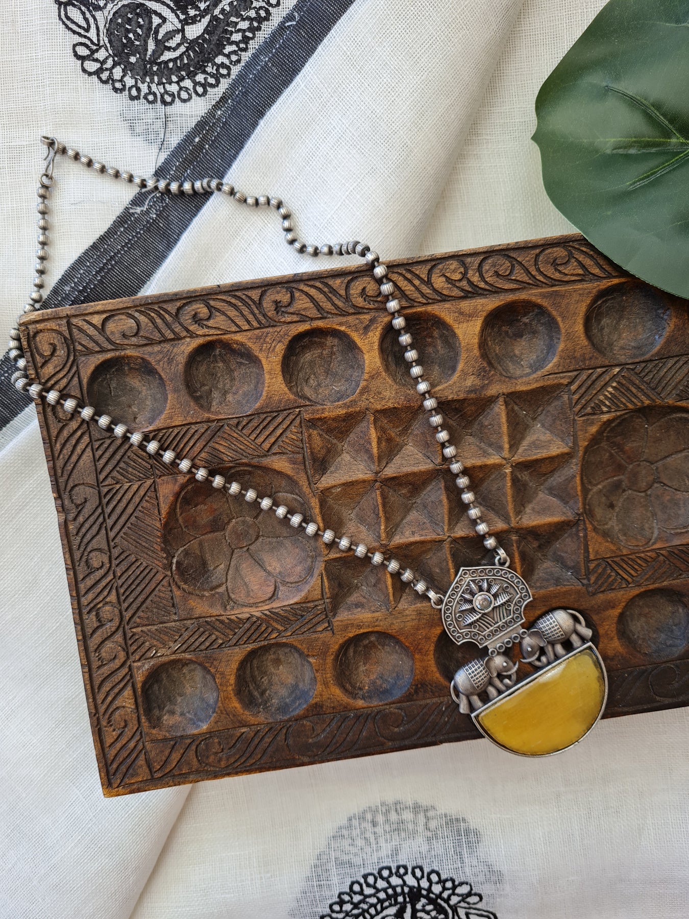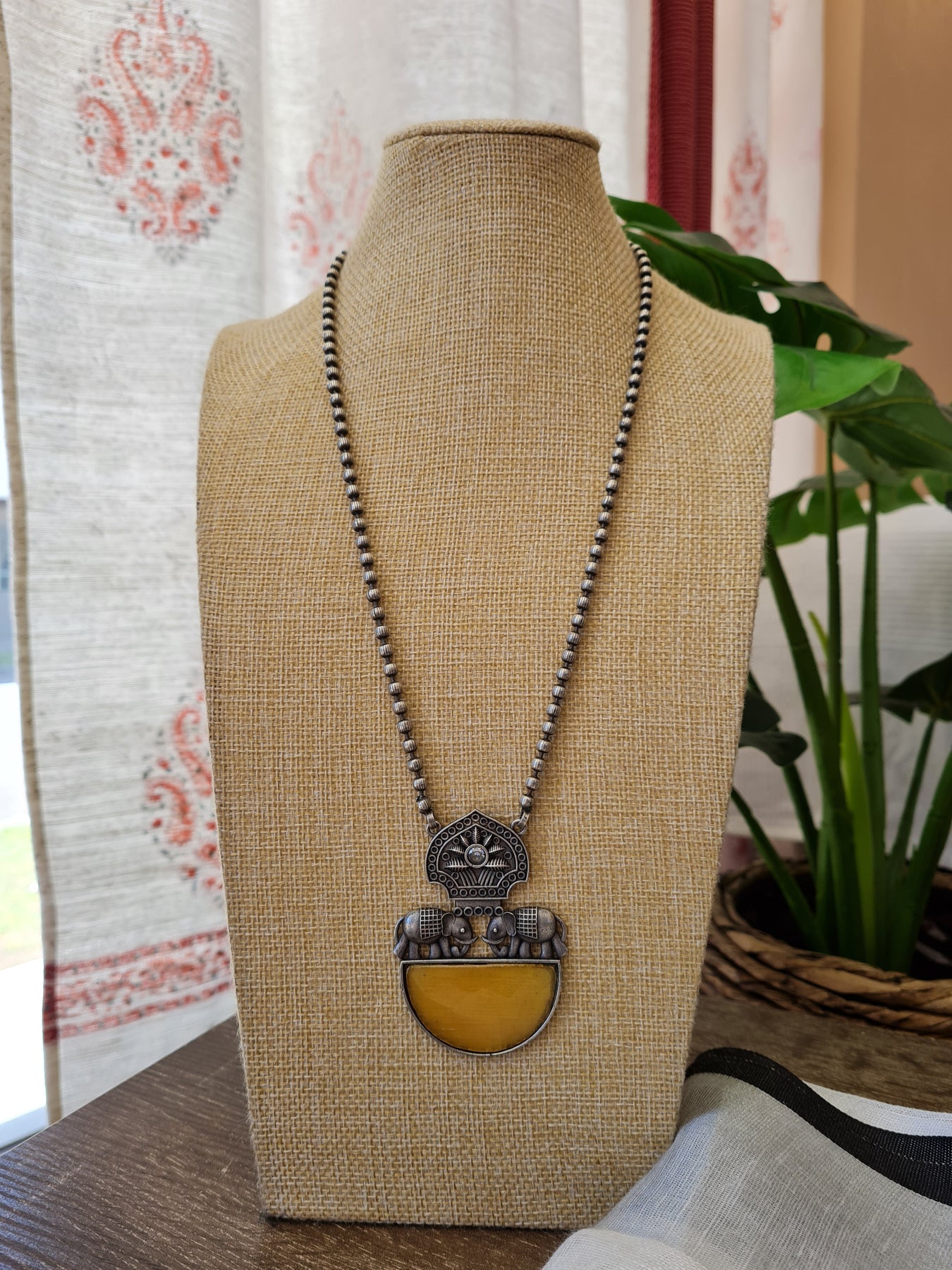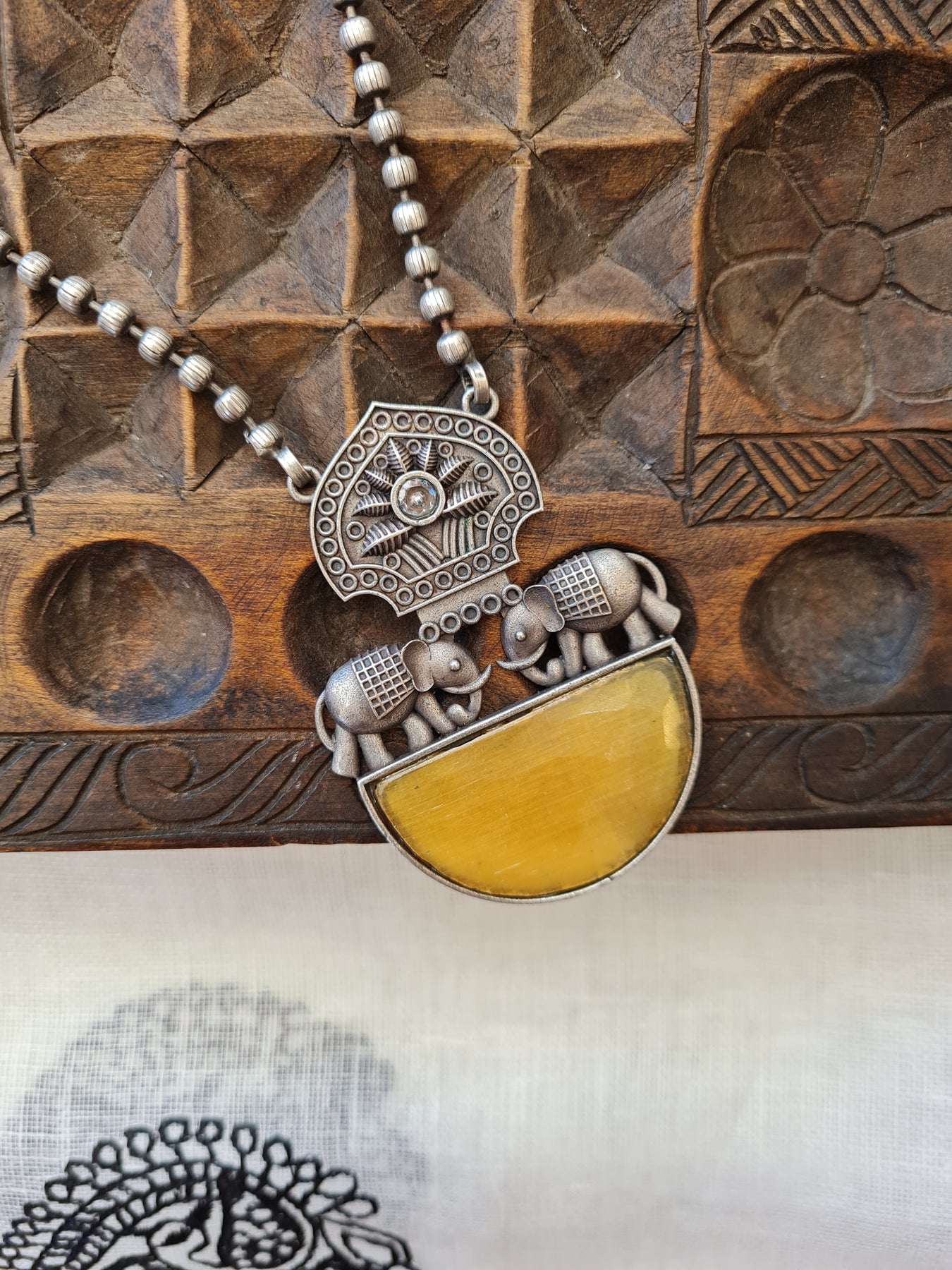 Oxidised Silver Necklace with a Yellow stone paired with matching Earrings