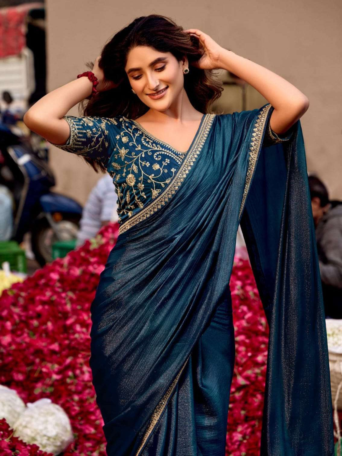 Soft & Easy to Drape Saree, with a Plain Solid Body and a Embroidered Blouse Fabric