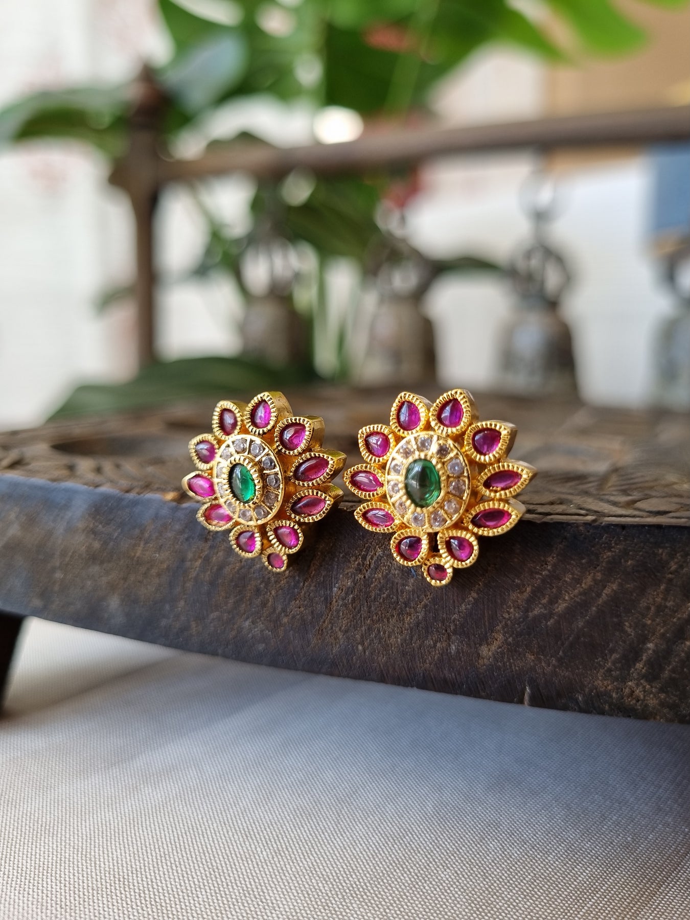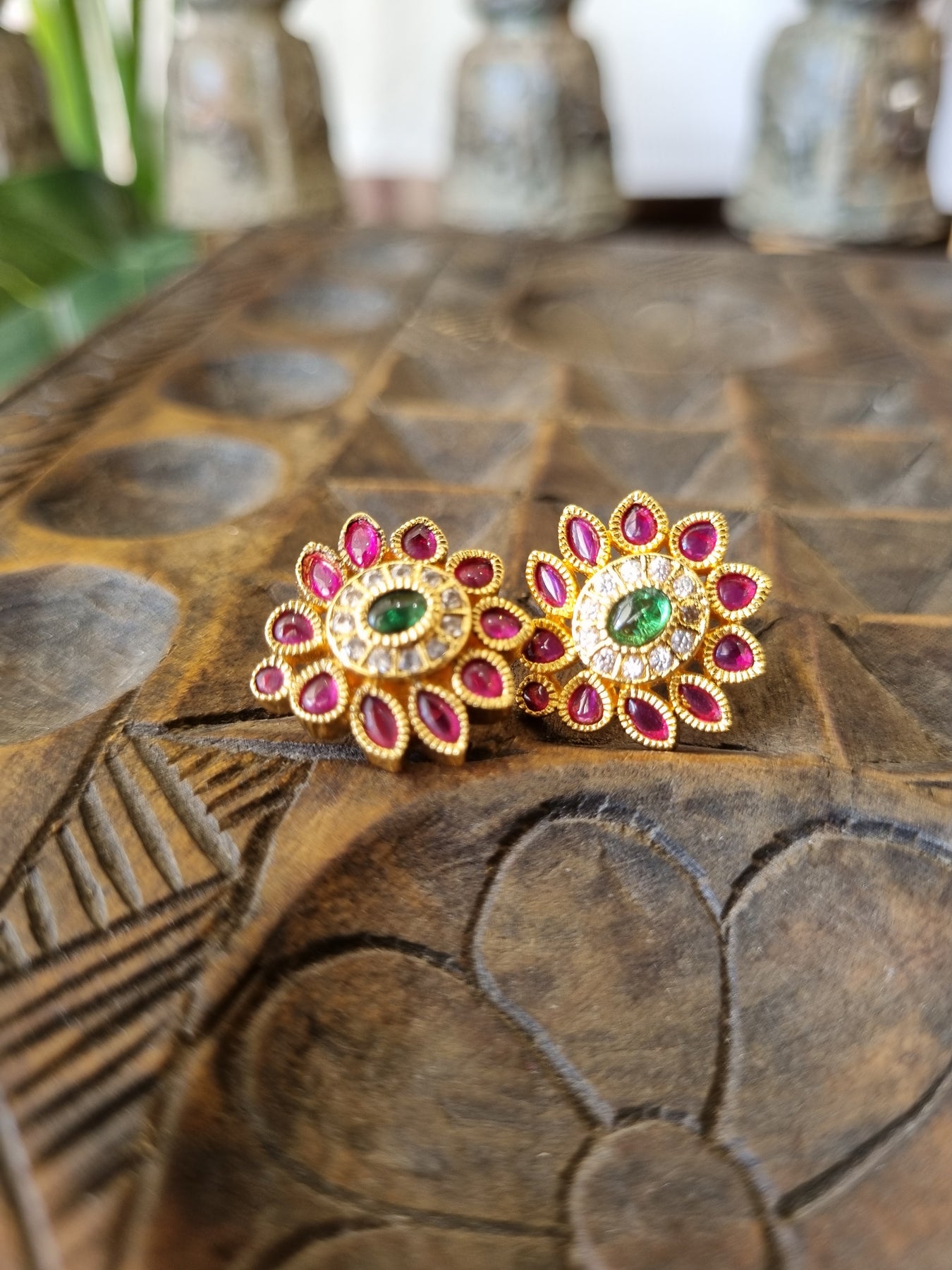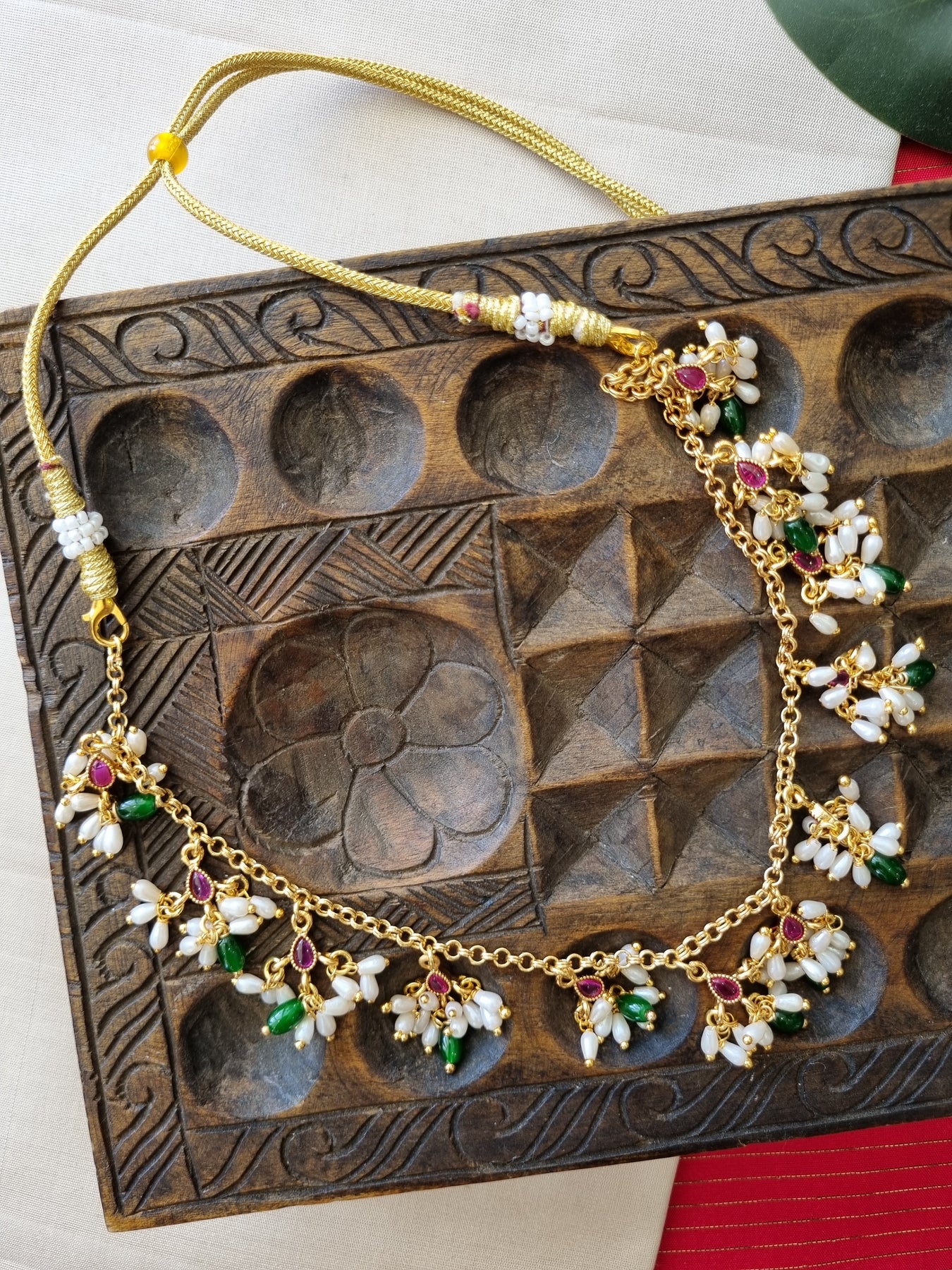 A beautiful necklace ornated with Pink & Green stones and pearls, paired with Earrings